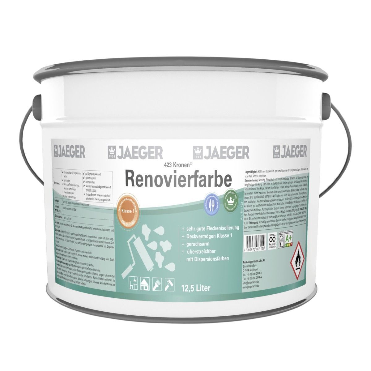 Jaeger 423 Kronen Renovierfarbe 2,5 Liter weiß