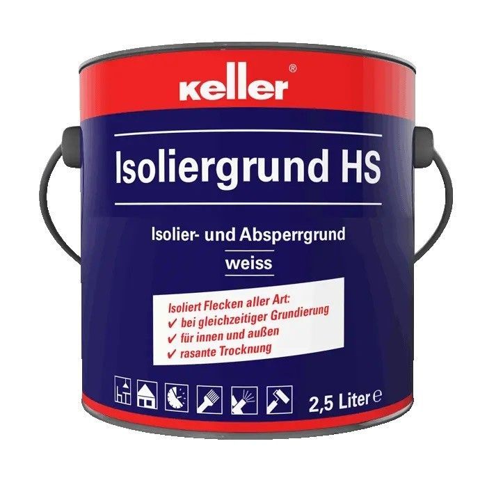 Jaeger 581 Keller Isoliergrund HS 0,75 Liter weiß Details für 581 Keller Isoliergrund HS 0,75 Liter weiß: Isolier- und Absperrgrund für innen und außen, weiß. Verhindert das Durchbluten von Verschmutzungen aller Art wie Nikotin, Asphalt, Teer, Karbolineum, Bitumen, Rauch- und Rußflecken, Farbstifte