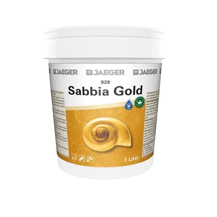 Jaeger 929 Sabbia 1 Liter gold Details für 929 Sabbia 1 Liter gold: - Metallic-Effektbeschichtung mit feiner Sand-Struktur. - Leicht zu verarbeiten. - Ergibt interessante Licht- und Schatteneffekte. Die Metallic-Effekt Wandfarbe eignet sich zur Veredelung von allen dekorativen Flächen im Innenraum.