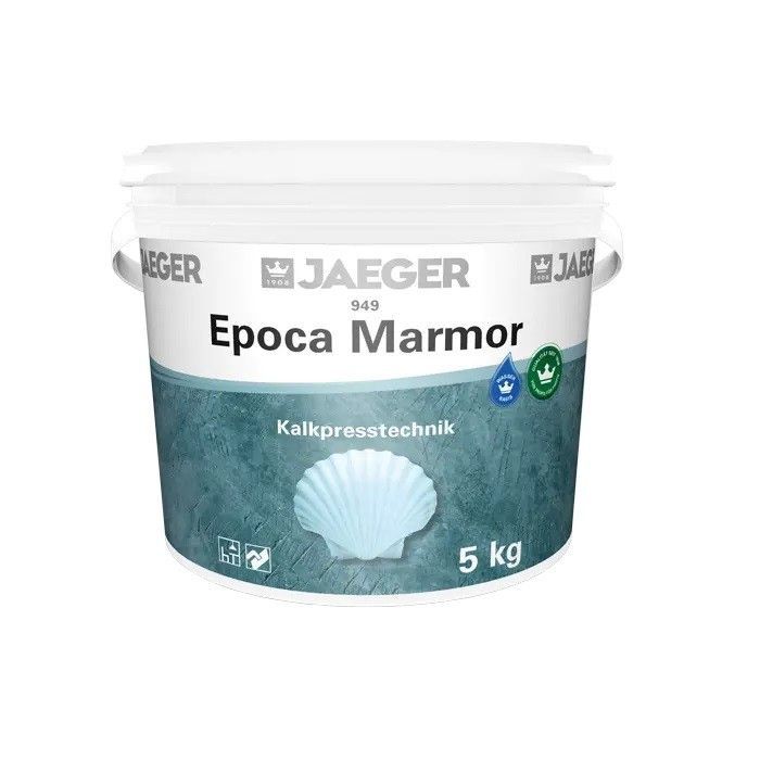 Jaeger 949 Epoca Marmor 5 kg weiß Details für 949 Epoca Marmor 5 kg weiß: - Umweltverträglich. - Mit natürlichem Löschkalk. - Atmungsaktive Oberfläche. Edelmatte Kalkpresstechnik aus hochwertigem, lange gereiftem Sumpfkalk. Für rationelle Kalkpresstechniken in nur 2 Lagen. Mit Jaeger Epoca Marmor wi