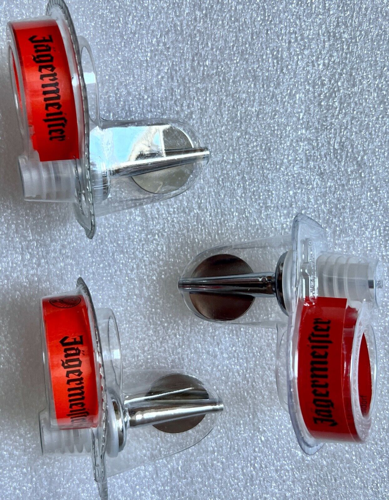 Neuer Ausgießer SET 3 Stück Die Ausgießer bestehen aus Metall und sind sehr robust und stabil. Das bekannte orangefarbige Logo von Jägermeister Kräuterlikör ziert den Abschluss. Der Ausgießer ist weißfarbig gummiert und sorgt für ein sicheres und gut portionierbares Ausschenken. Höhe ca. 7,5cm Breit