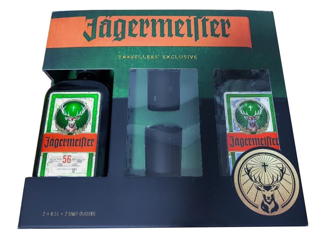 Jägermeister Kräuterlikör, Traveler´s Exclusive, inkl. 2 Gläser, 2x0,5L, 35% Vol