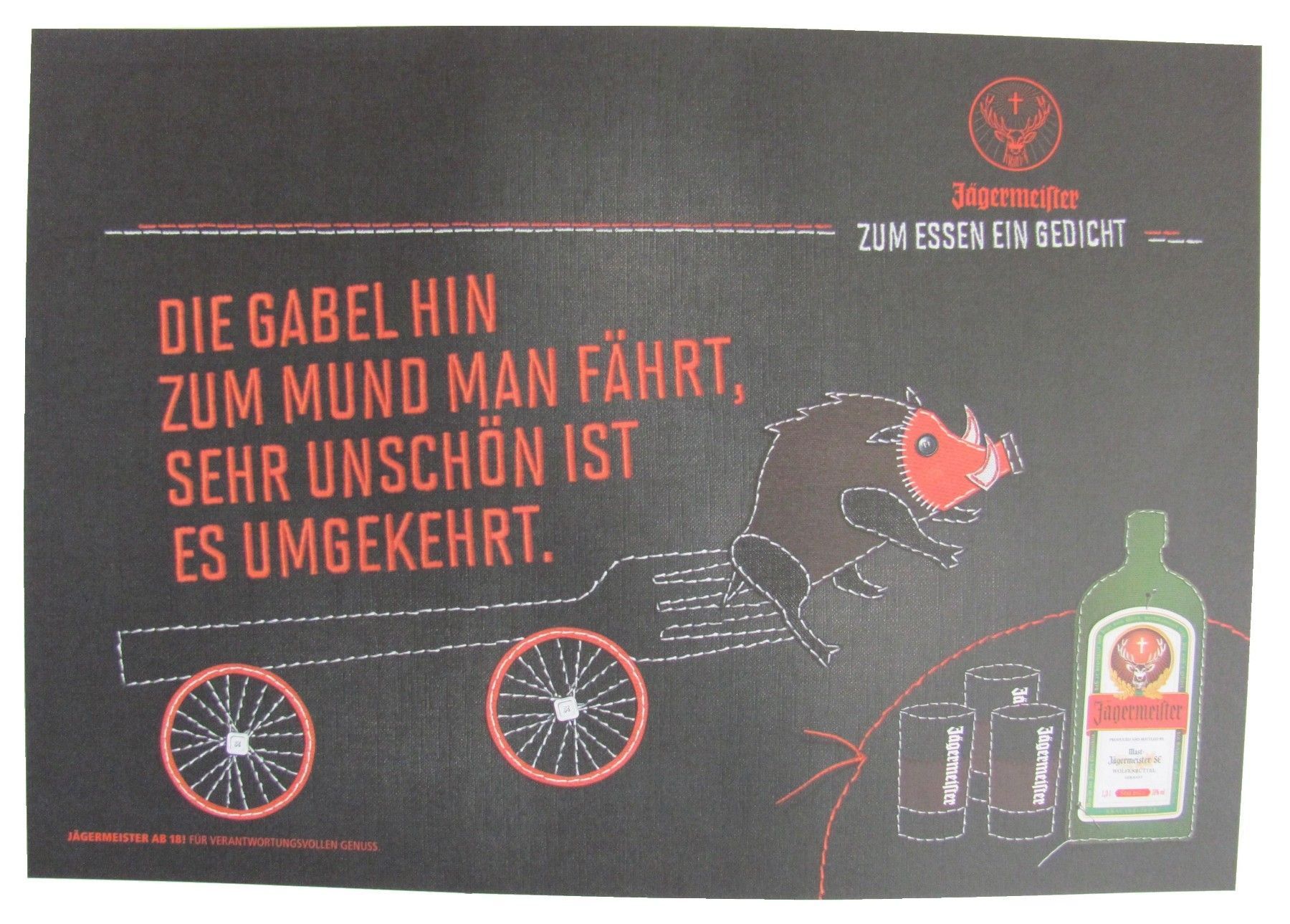 Jägermeister Jägermeister - Platzdeckchen aus Papier 38,5 x 26,8 cm - Die Gabel hin zum Mund man