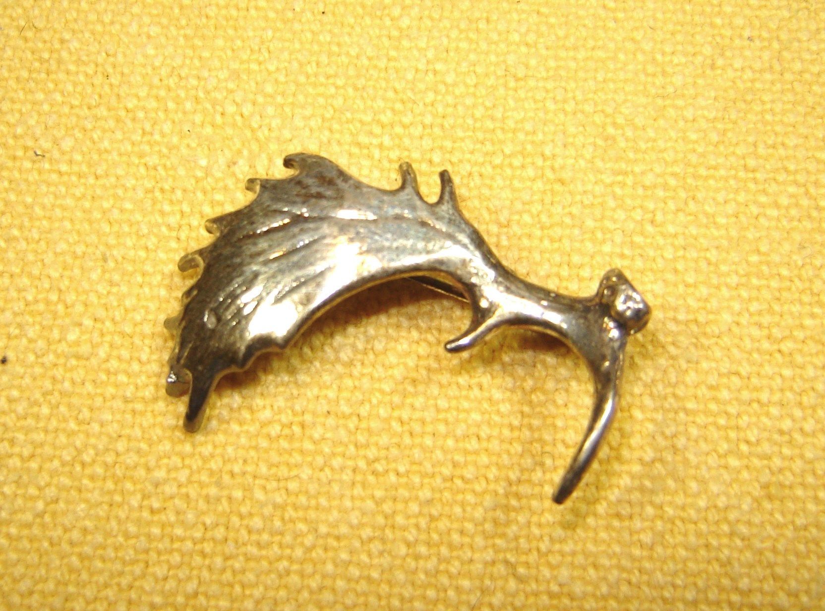 Jagdbrosche Elchgeweih Geweihstück versilbert 3,7 cm Anstecknadel Brosche p