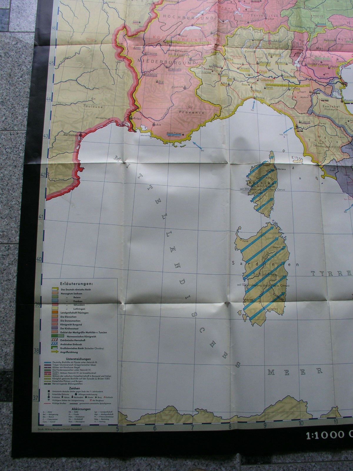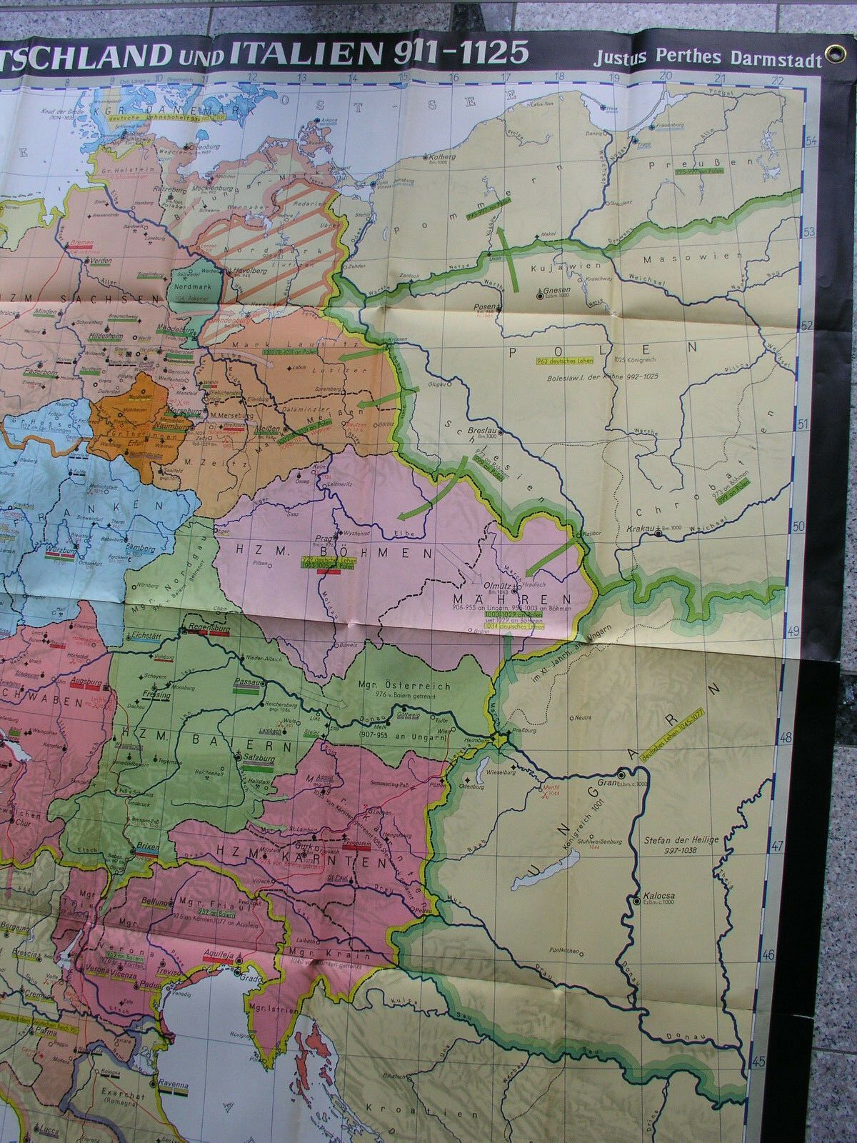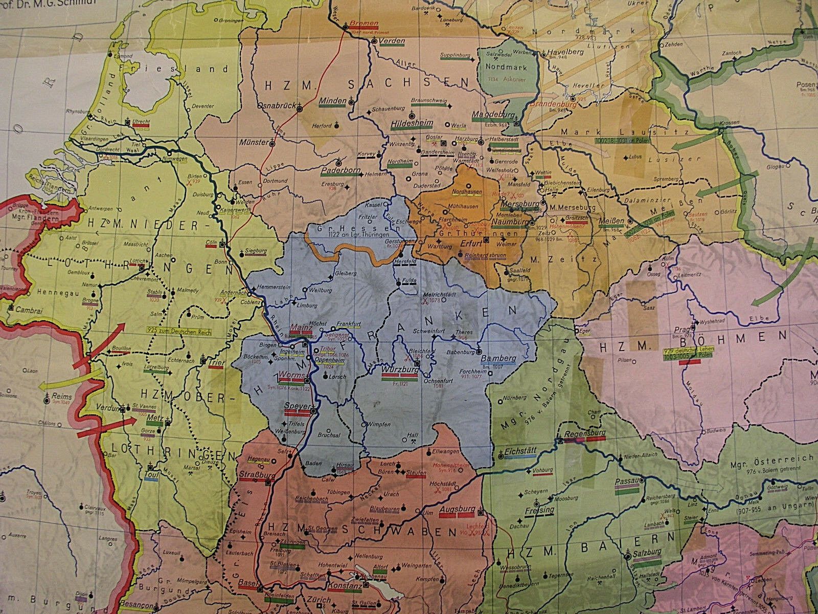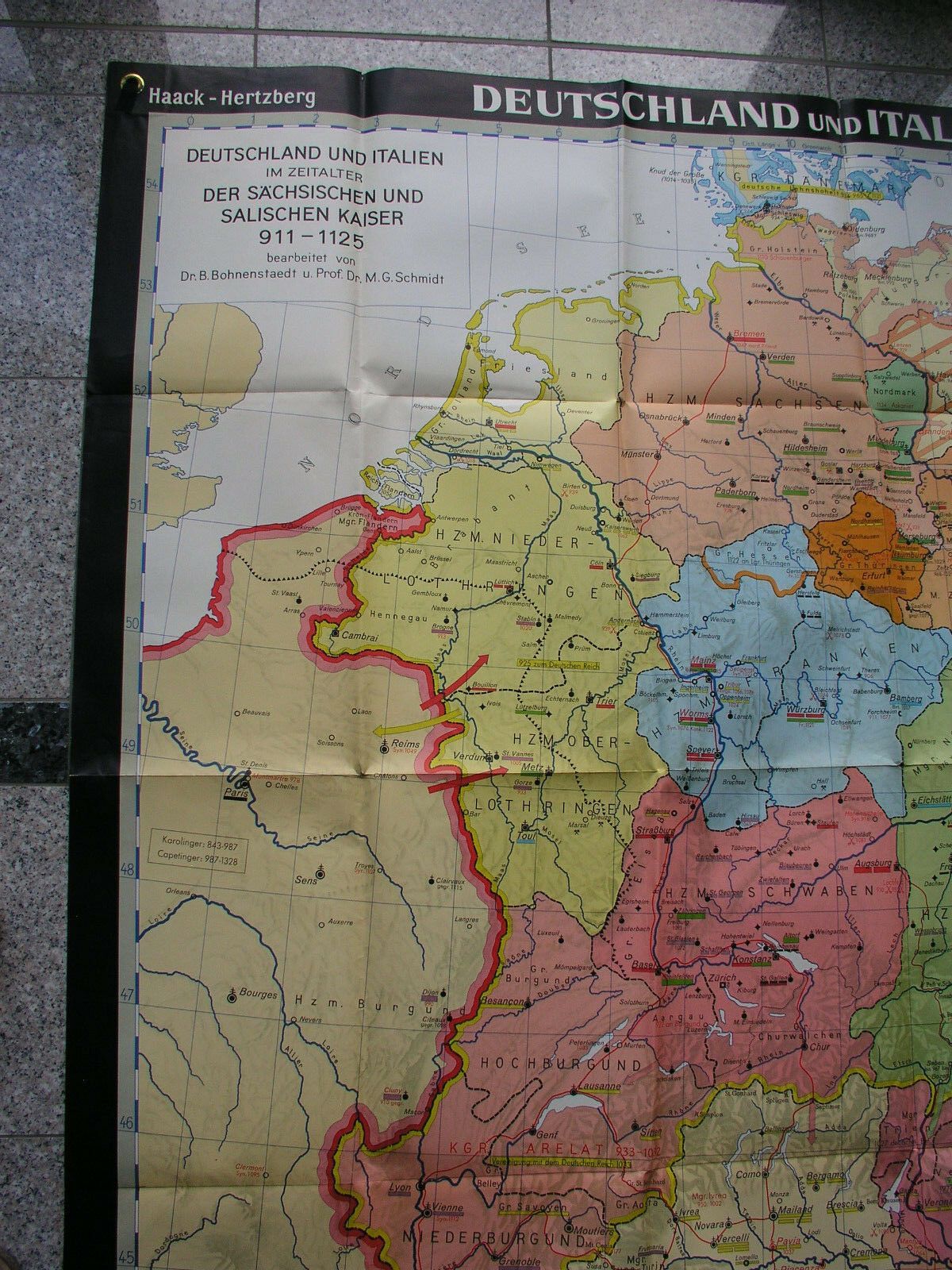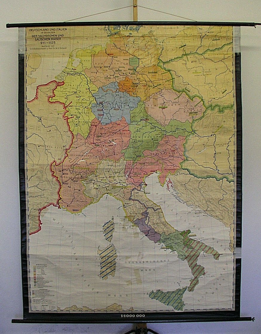 Jahre 911-1125 155x215 1960 vintage old germany wall map card middle age history Siehe in der Liste unter Nr. 464 Deutschland und Italien 911-1125 im Zeitalter der sächsischen und salischen Kaiser (KS542) ab 2. Detailfoto nicht von dieser Kartensammler (allumfassend...speziell deutsche bezahlbare Ka