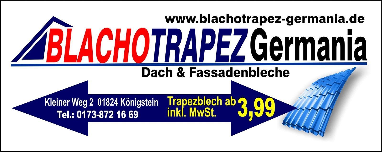 Jahrelang Haltbar! Werbebanner farbig bedruckt auf 510 g. PVC, 400 cm x 70 cm