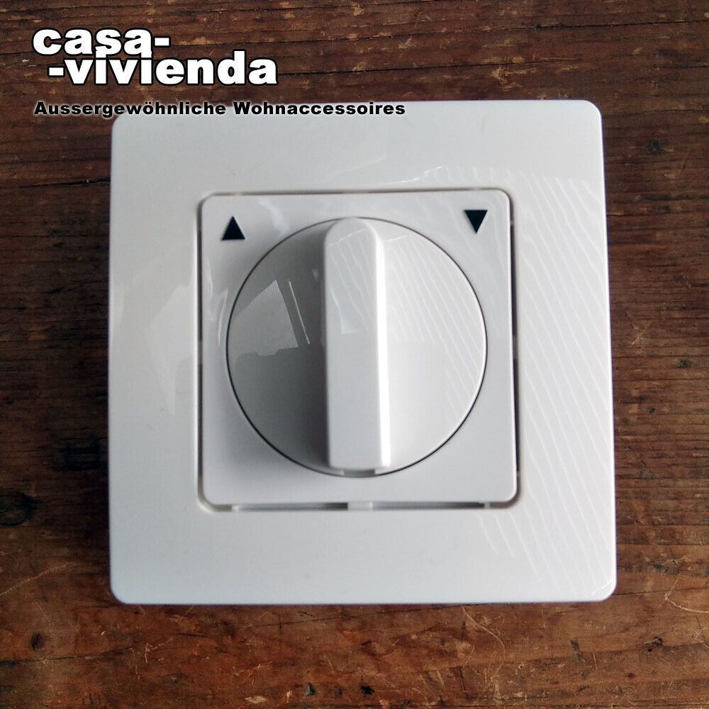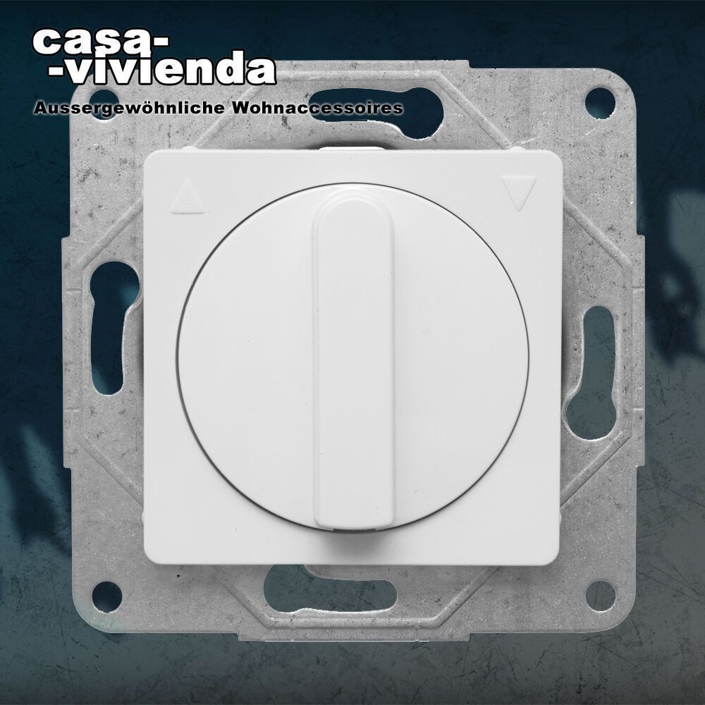 casavivienda Außergewöhnliche Wohnaccessoires ... ...anders als alle Anderen... Jalousie Rolladen-Knebelschalter - UNIVERSAL Systemmaß 50x50 mm komplett mit 1-fach Rahmen - Tast- und Schaltfunktion - Reinweiß RAL9010 Verwendung: passend für Schalterprogramme UNIVERSAL Systemmaß 50x50 mm mit 1-fach R