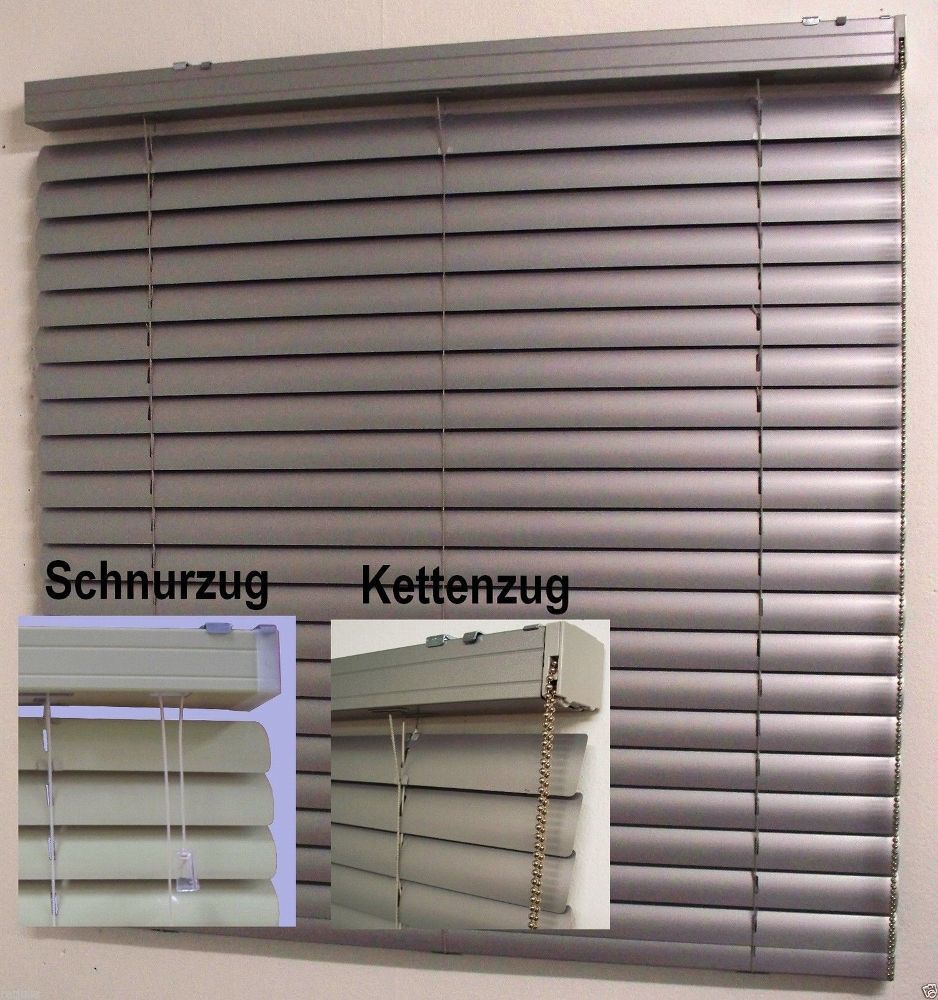 Sie ersteigern eine nagelneue maßgefertigte Aluminiumjalousie 50 mm Lamellenbreite, Bedienung durch Schnurzug in bewährter Qualität zum Preis 110,00 Euro / QM. Montagezubehör(Standard incl.)! Standardausführung: Alujalousie in 50 mm, Zugschnur sowie Montage mit Unihaltern (Wand/Decke) incl.