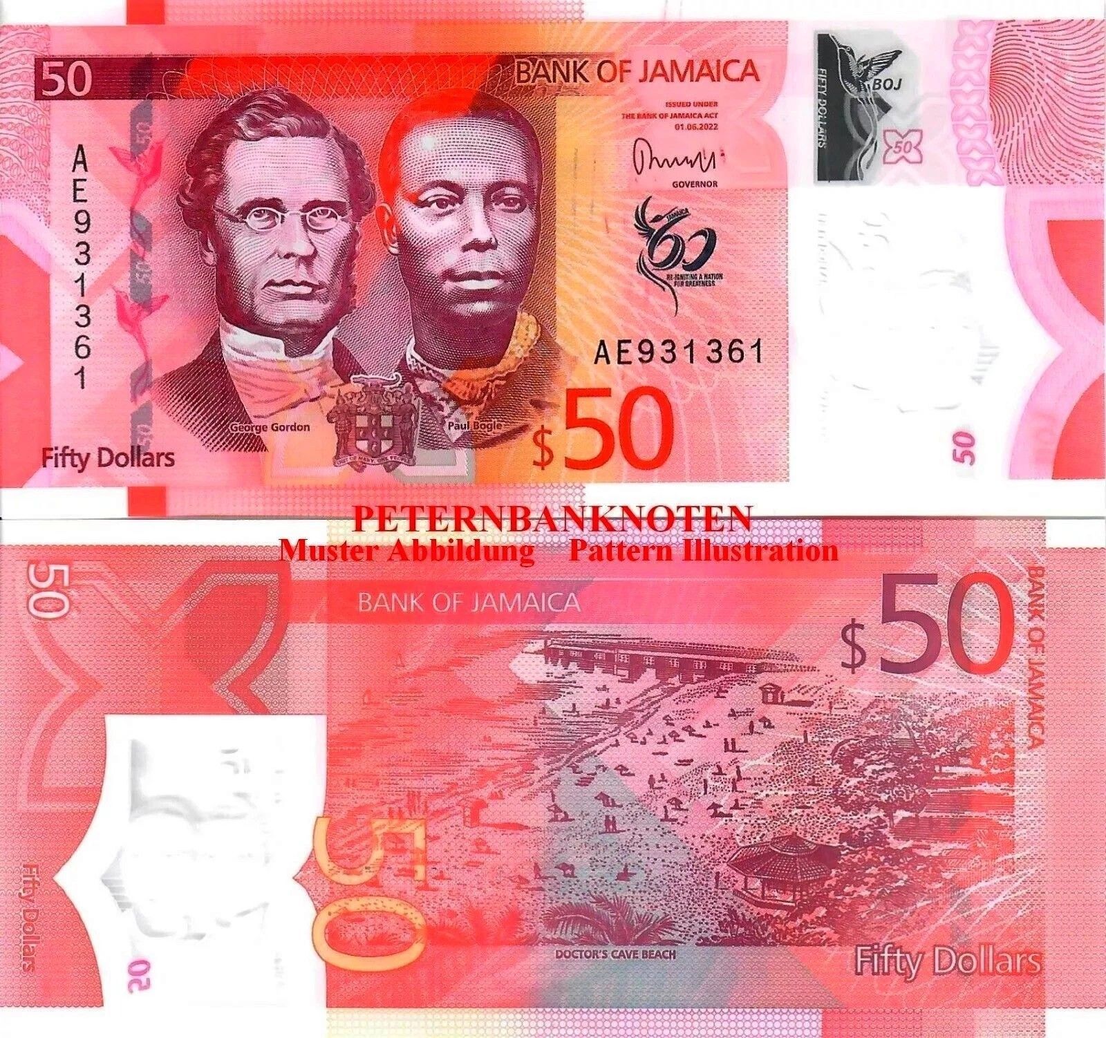 Jamaika / Jamaica 50 Dollars 2022 Unc P.96 Polymer 695#