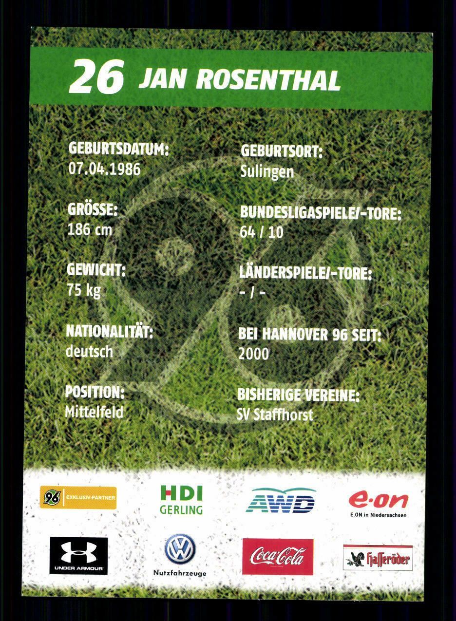 Jan Rosenthal Autogrammkarte Hannover 96 2009-10 Original Signiert