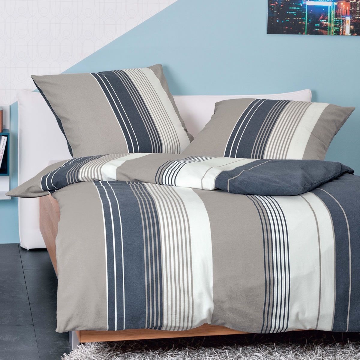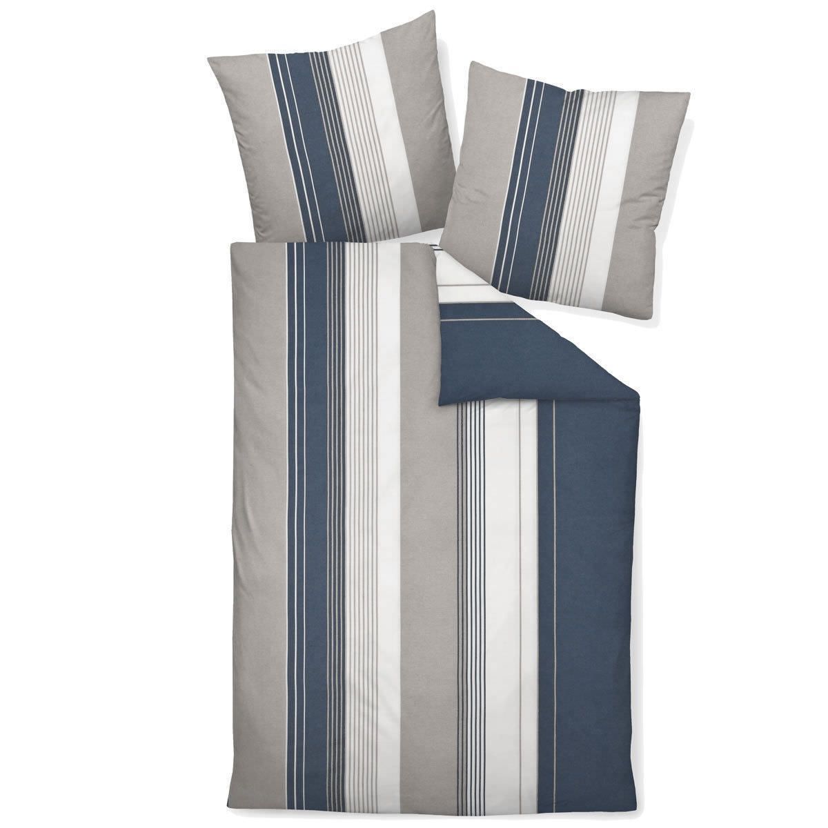Janine Janine Biber 1B-Bettwäsche 135x200 Davos 65028-07 Streifen blau taupe