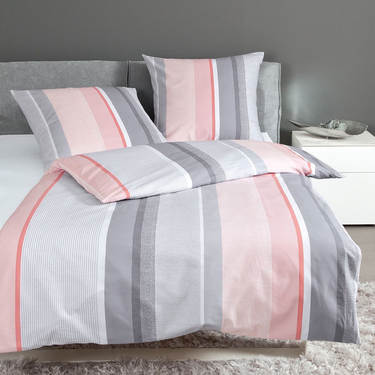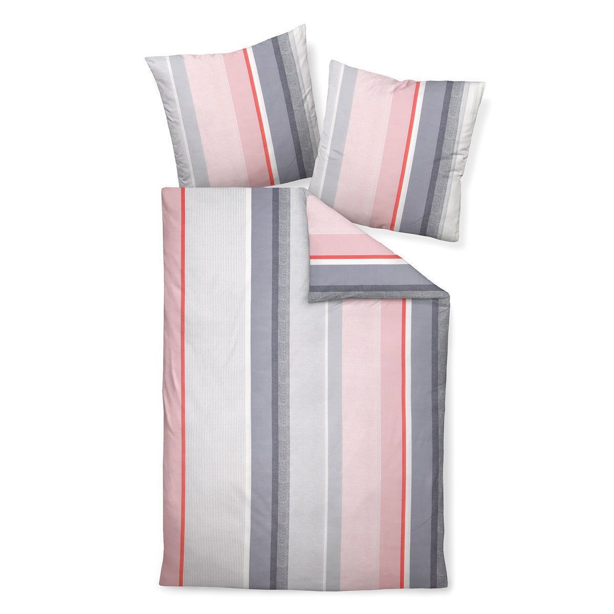 Janine Biber 1B-Bettwäsche 135x200 Davos 65041-01 Streifen rosa silber