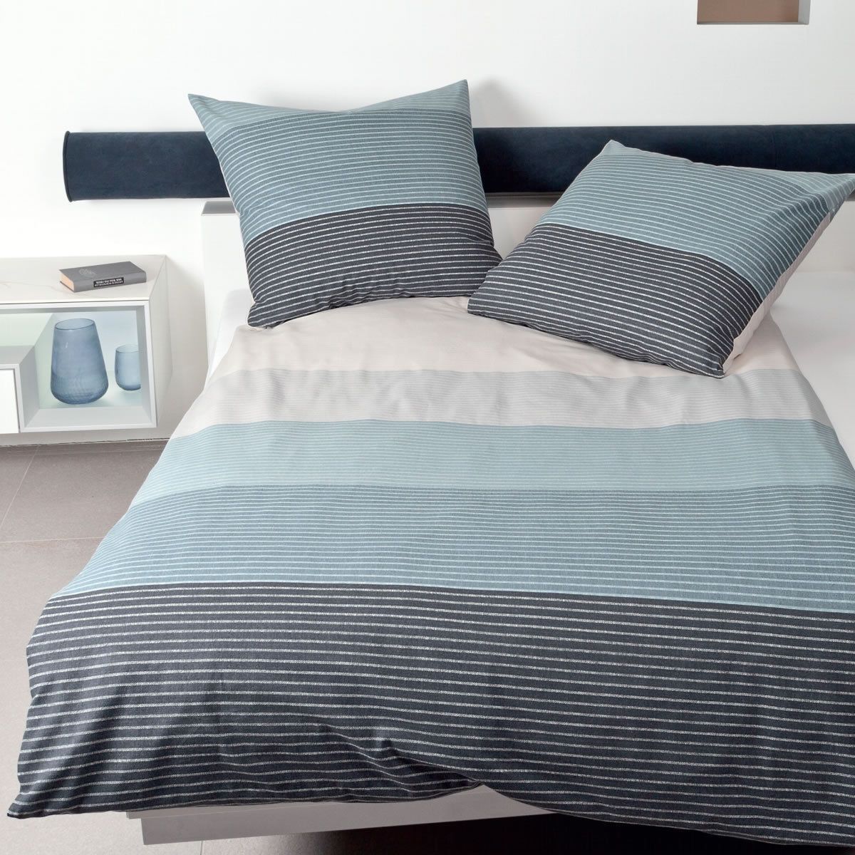 Janine Biber 1B-Bettwäsche 135x200 Davos 65043-02 Streifen jeansblau ecru
