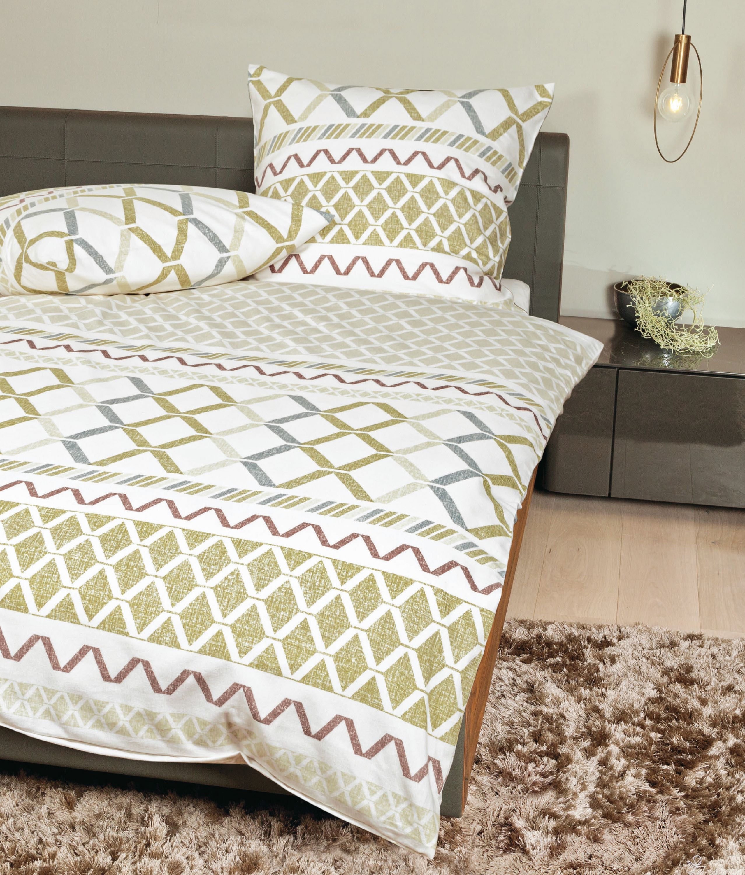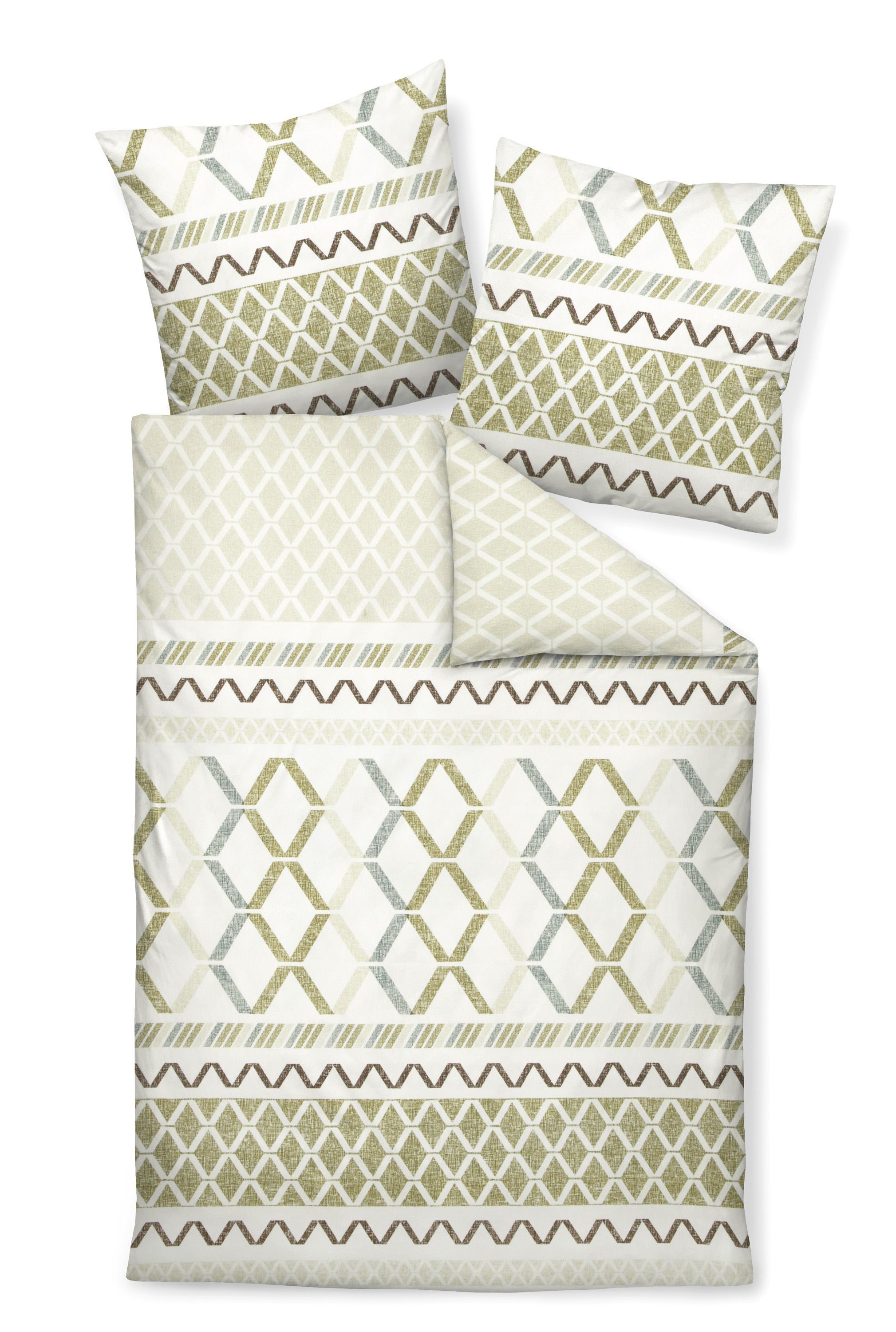 Janine Biber 1B-Bettwäsche 135x200 Davos 65119-06 Streifen Zickzack oliv blau