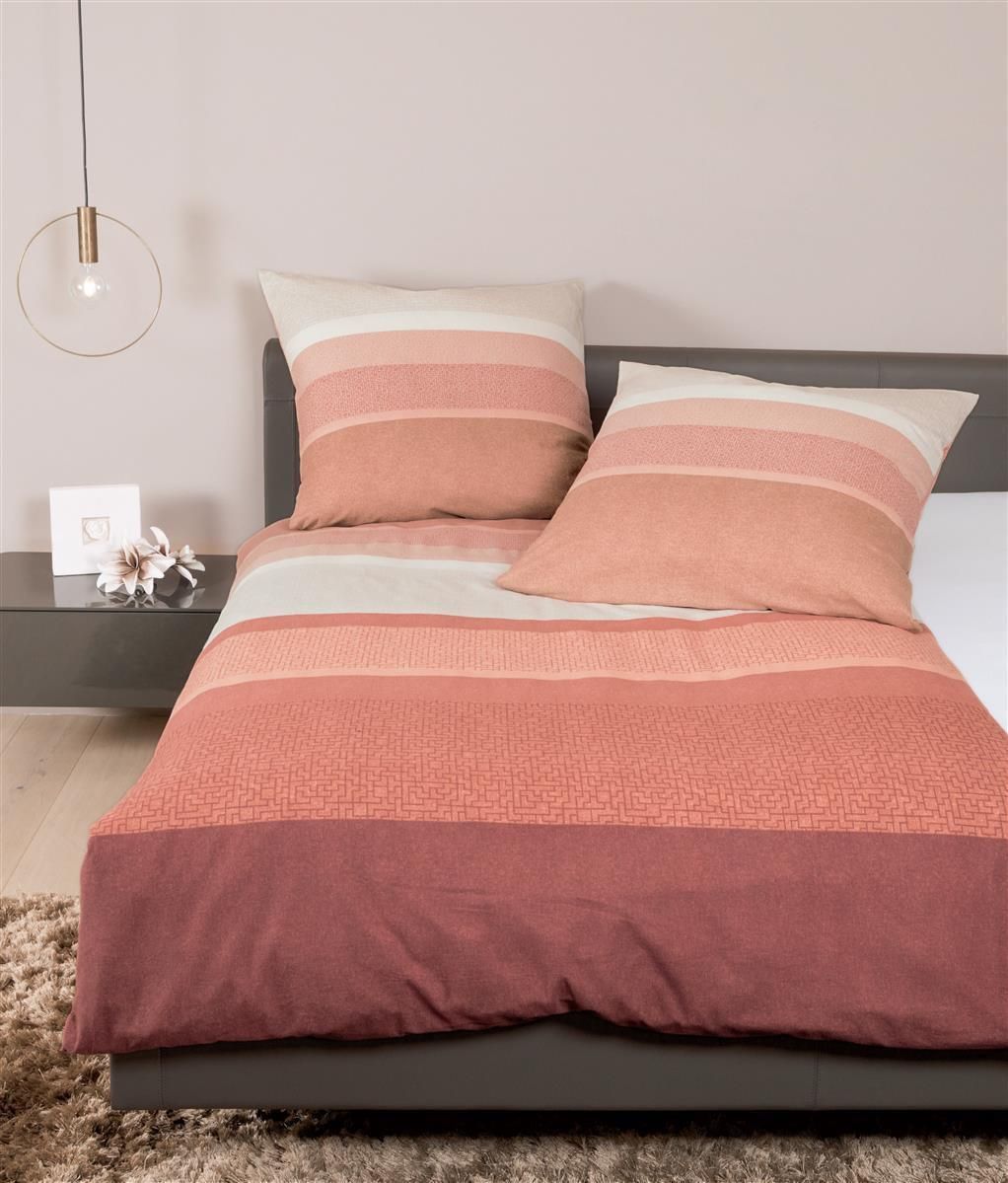 Janine Biber 1B-Bettwäsche 155x220 Davos 65089-04 Streifen Herbst apricot brandy