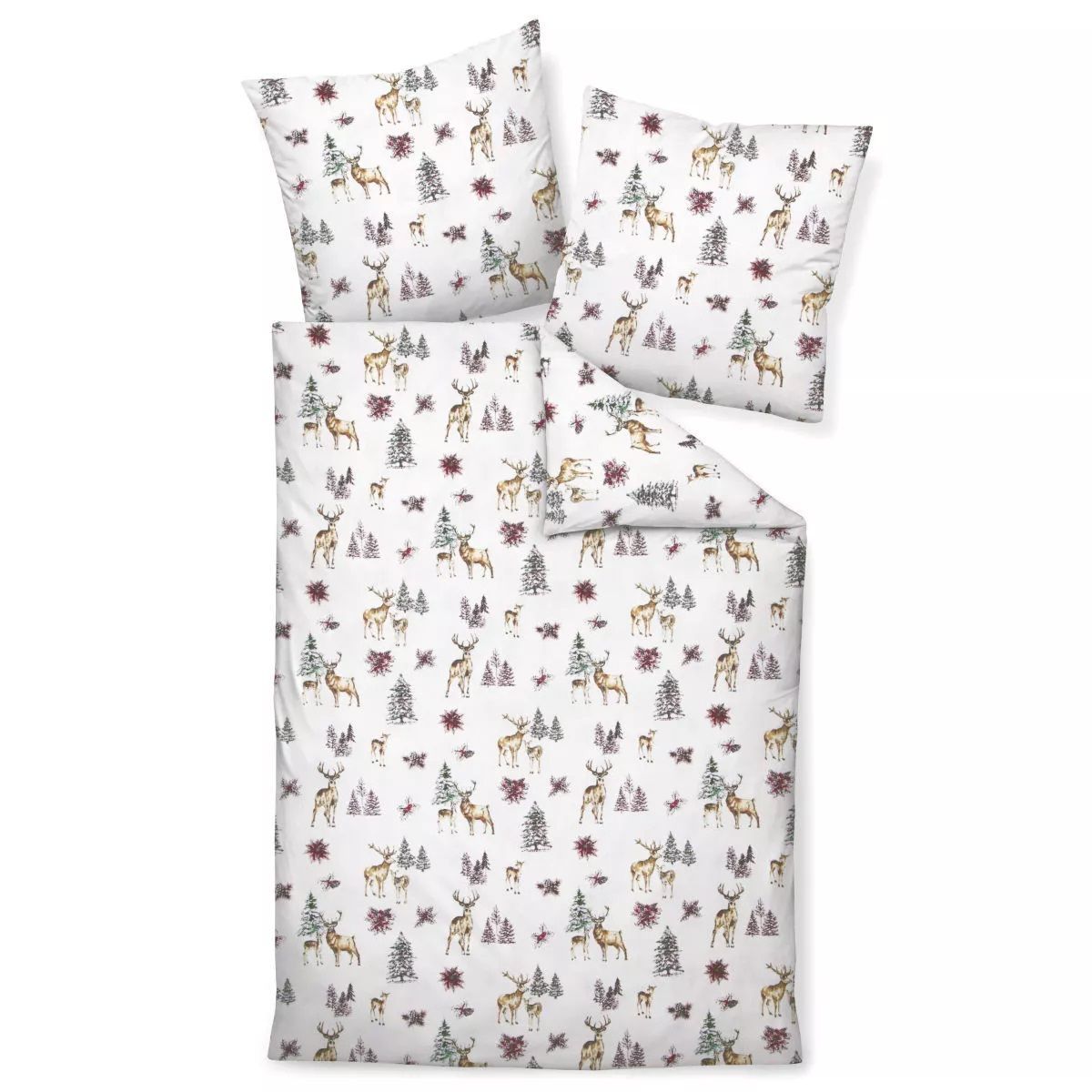 Janine Janine Biber Bettwäsche Davos 155x220 Rehe Hirsch Bäume Winter 65150-07