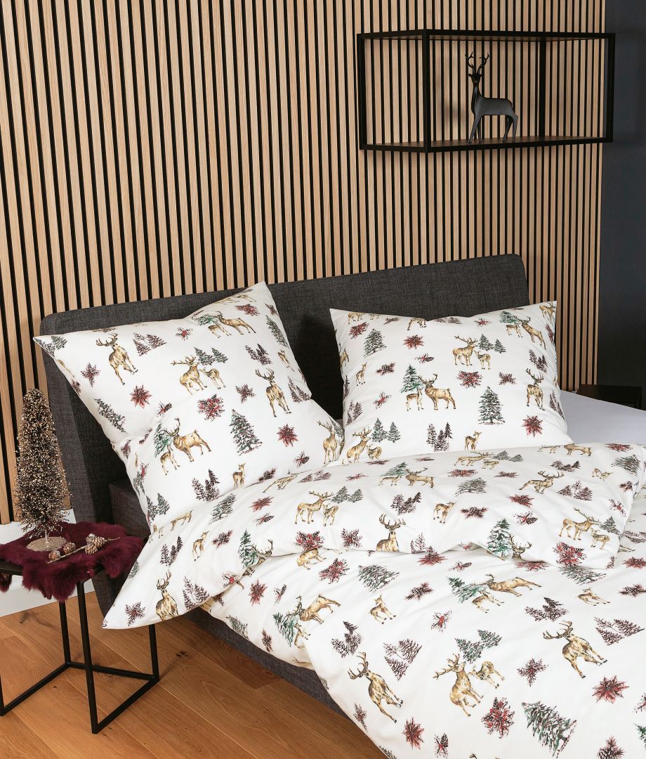 • Janine Biber Bettwäsche Davos 135x200 Rehe Hirsch Bäume Winter 65150-07