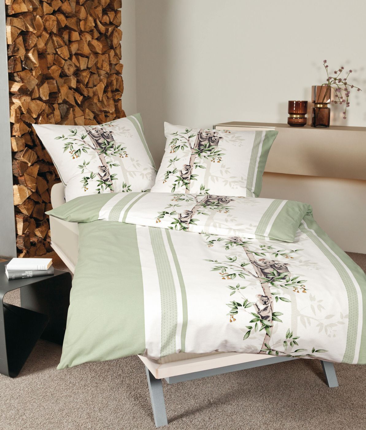 Janine Janine Feinbiber Bettwäsche Davos 155x220 Koalabär Bambus grün hellgrün 65116-06