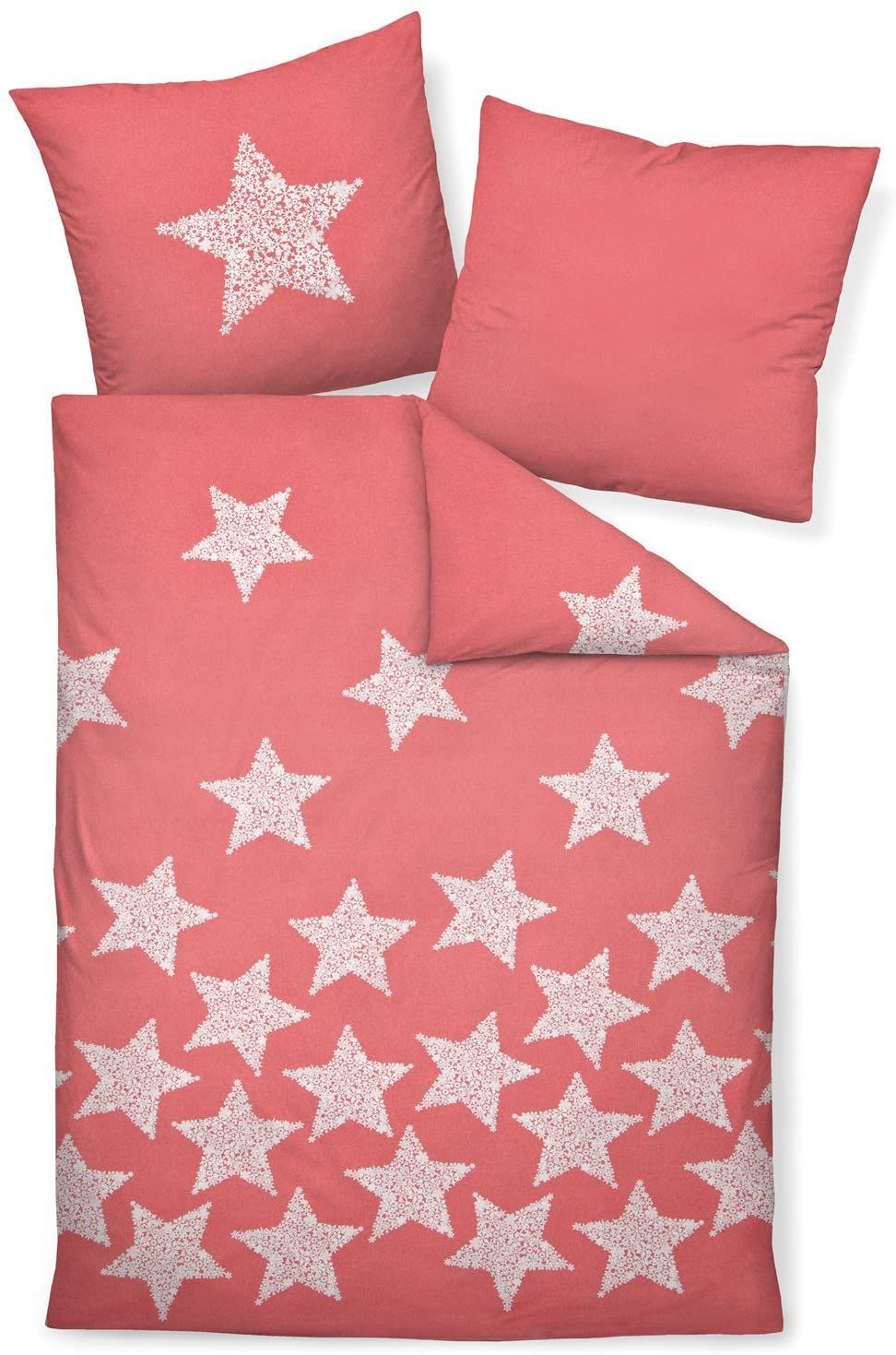 Janine Janine Feinbiber Bettwäsche Davos 200x220 Sterne korallenrot weiß 65018-01