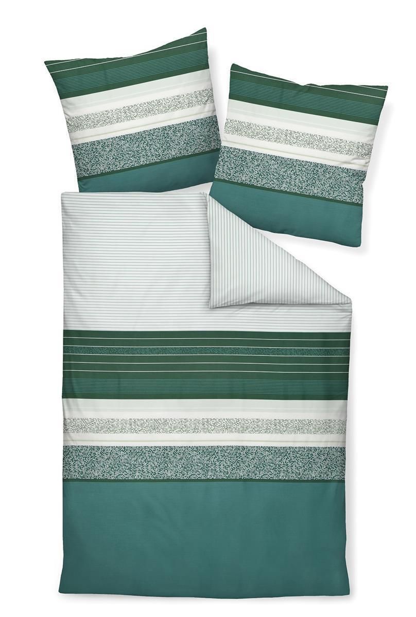 Janine Janine J.D. Mako-Satin Bettwäsche 200x200 Pixel Streifen petrol grün 87046-06