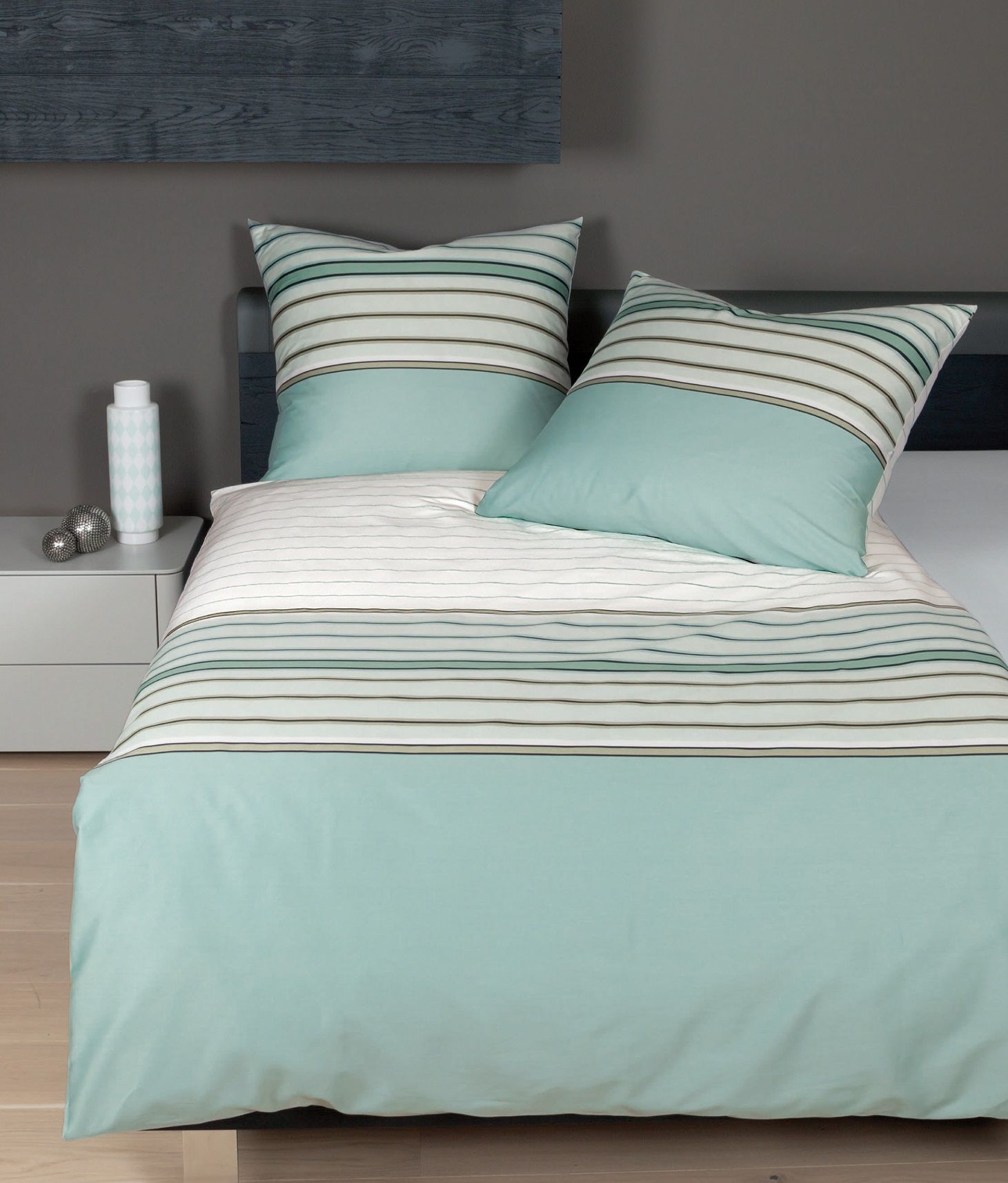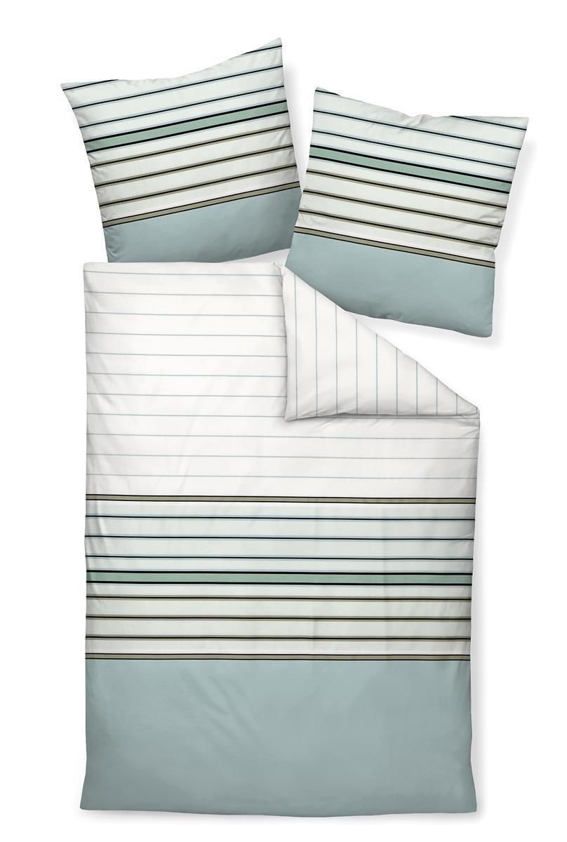 Janine Janine J.D. Mako-Satin Bettwäsche 200x200 Streifen meergrün lilie 87051-06