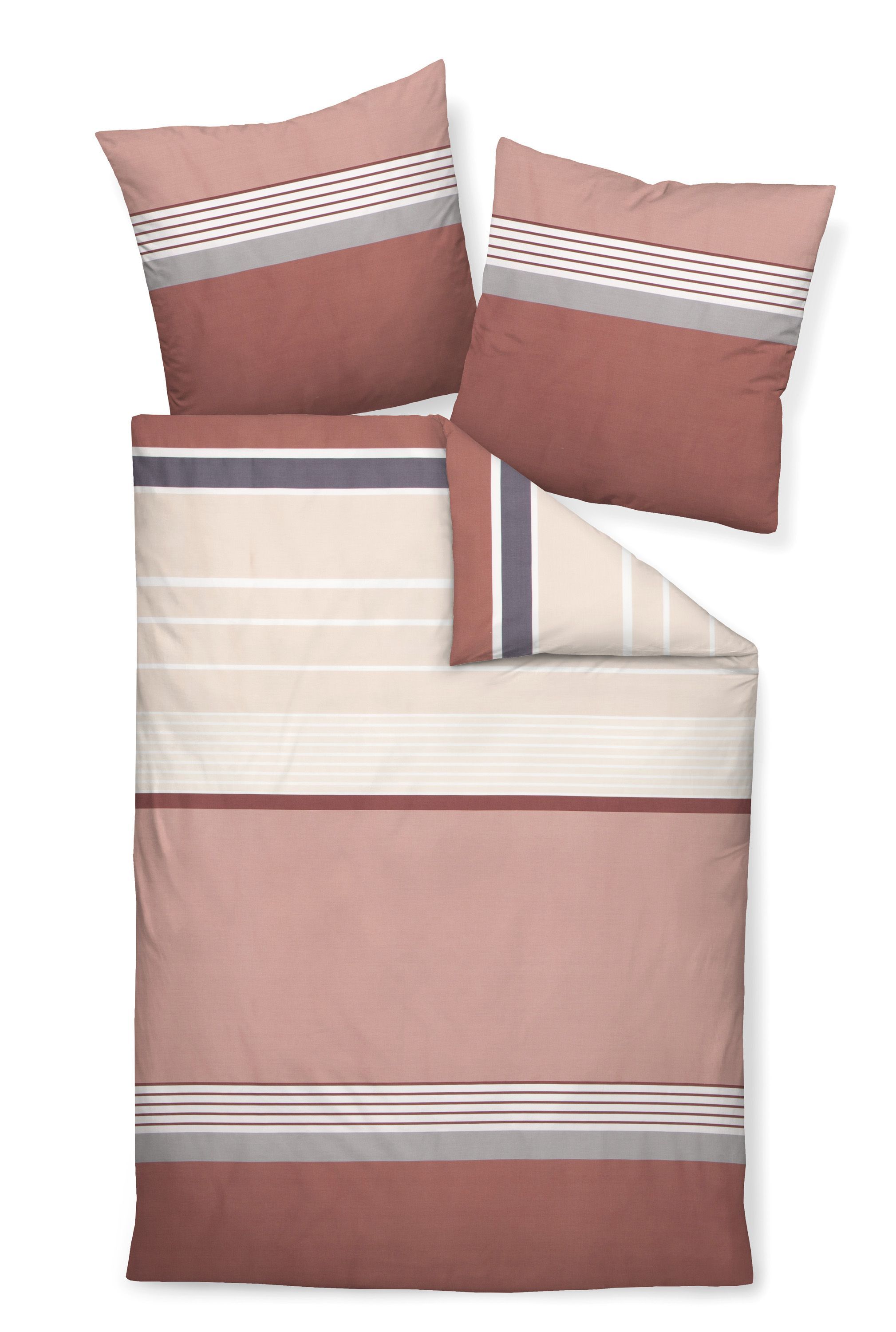 Janine Janine J.D. Mako-Satin Bettwäsche 200x220 Streifen burgund rose 87066-05