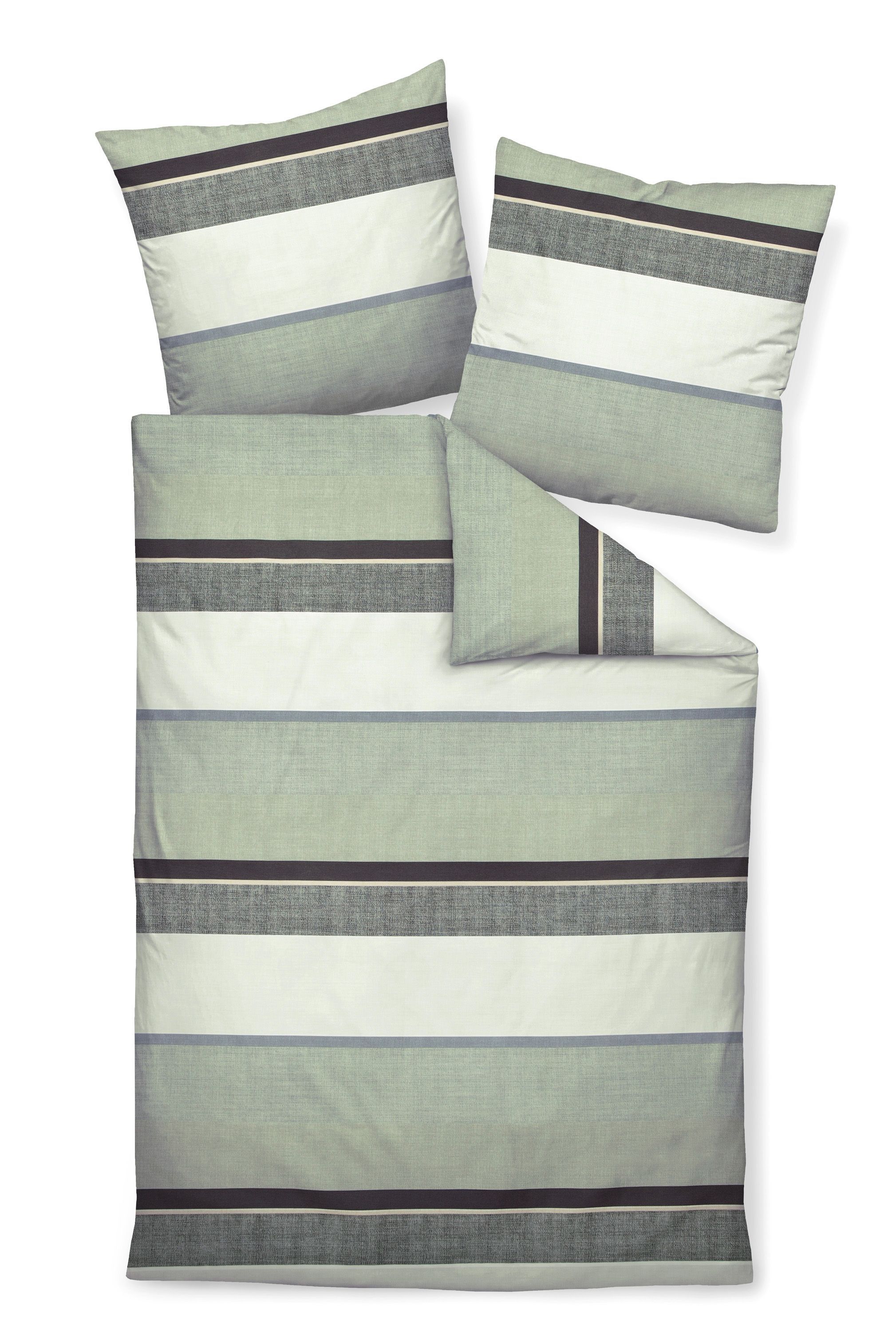 Janine Janine Moments Mako-Satin Bettwäsche 155x220 Streifen rauchgrün titan 98085-08