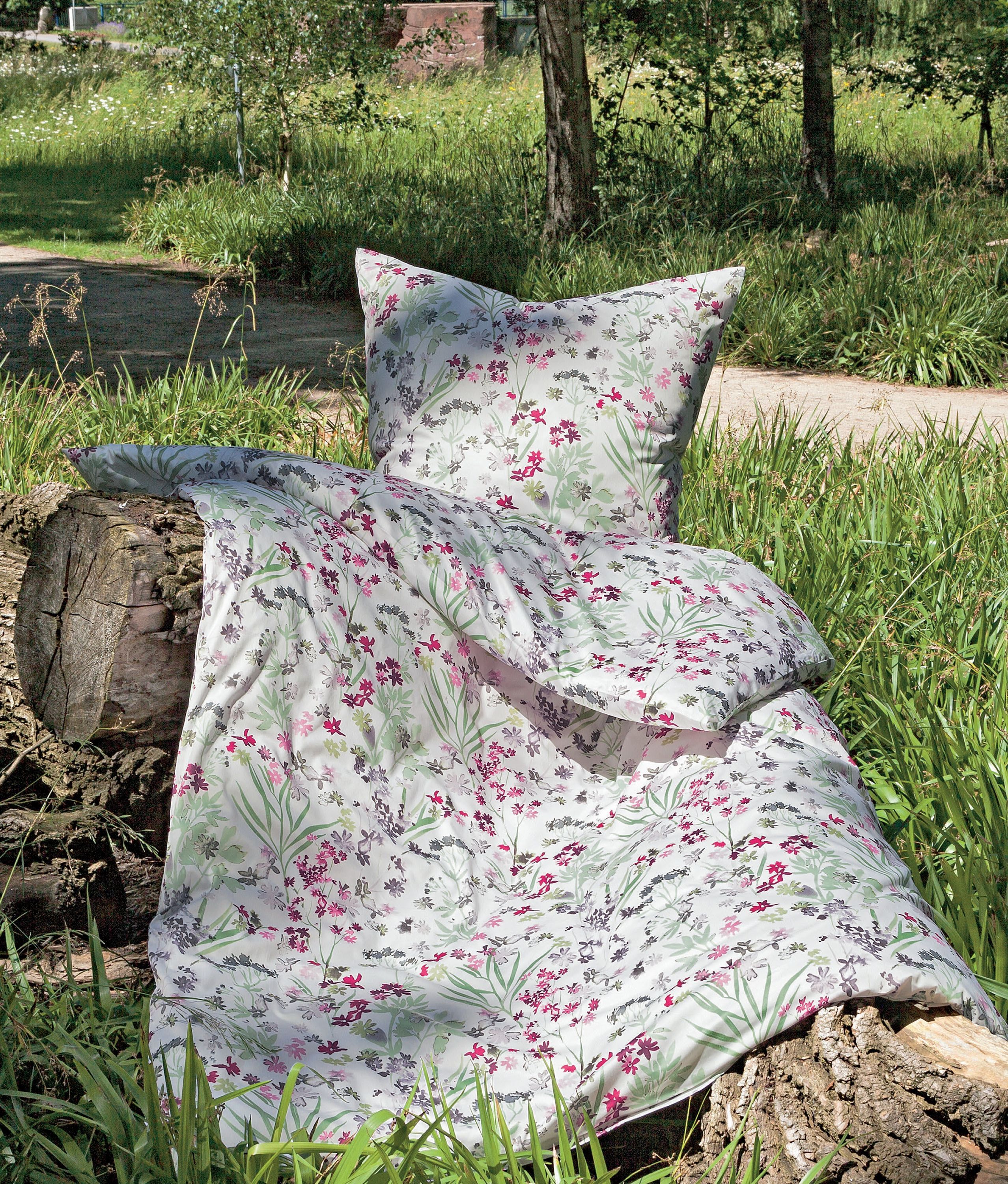 Janine Janine Moments Mako-Satin Bettwäsche 155x220 Streublümchen rosa lila 98078-01