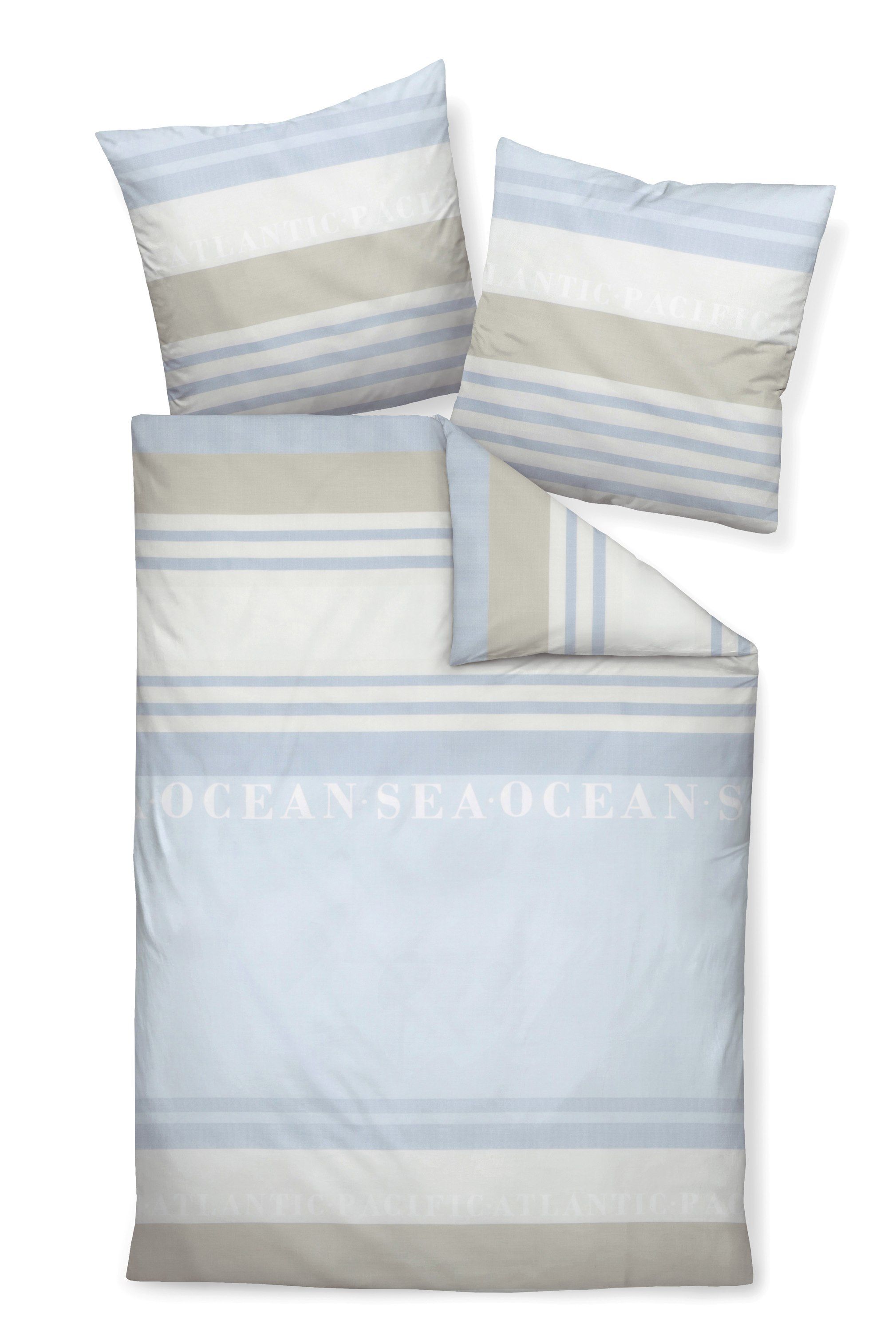 Janine Janine Moments Mako-Satin Bettwäsche 200x200 Streifen hellblau natur 98102-02