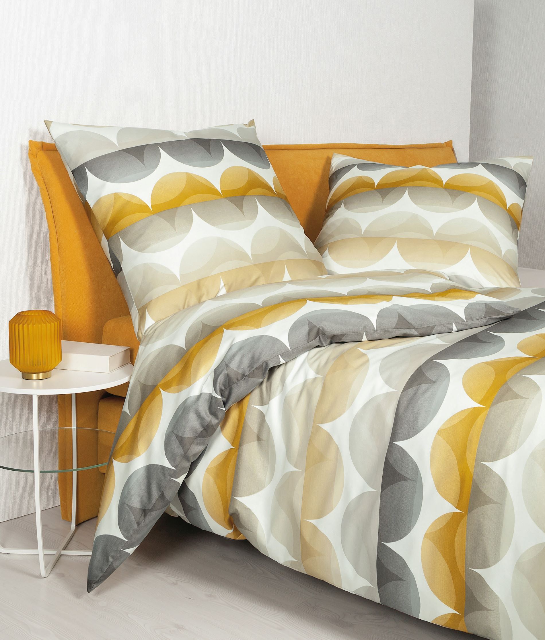 Janine Janine Moments Mako-Satin Bettwäsche 200x220 Wellen honig sand grau 98092-3