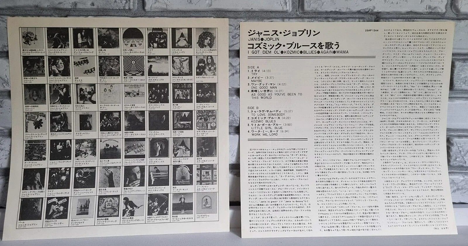 Reissue 1978 - 2 LP-size inserts: one with Japanese text, track list and song texts in English and one with the company catalogue Trackliste A1 Try (Just A Little Bit Harder) A2 Maybe A3 One Good Man A4 As Good As You've Been To This World B1 To Love Somebody B2 Kozmic Blues B3 Little Girl Blue B4 W