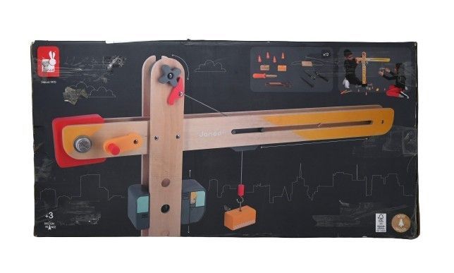 MEIN ERSTER BAUKRAN: Dieser 74 cm hohe Kran aus Massivholz mit 12 Zubehörteilen, darunter 2 Werkzeuge, mit denen das Kind den Kran selbstständig zusammenbauen kann, verspricht Kindern ab 3 Jahre jede Menge Spielspaß;