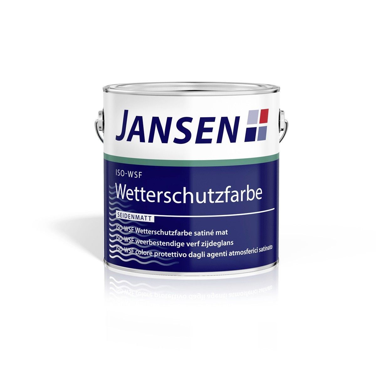 Jansen ISO-WSF Wetterschutzfarbe 5 Liter weiß Details für ISO-WSF Wetterschutzfarbe 5 Liter weiß: Einzigartig: Ein-Topf-Wetterschutzfarbe. Isolierende und rostinhibierende Wirkung bei Weiß-Anstrich. Grund-, Zwischen- und Schlussanstrich aus einer Dose. Jansen ISO-WSF Wetterschutzfarbe bietet optimal