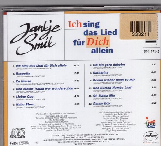 Jantje Smit - Ich sind das Lied für Dich allein Top CD 1 A gepflegt - Super Zustand Mehrkosten spart Portokosten