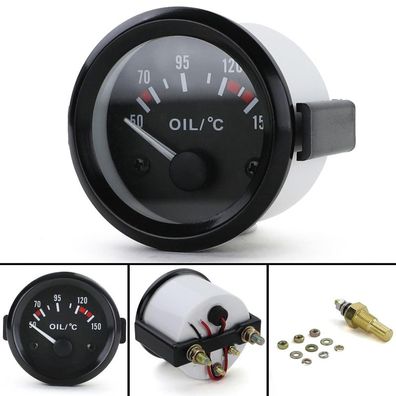 • 52mm Zusatzinstrument Öltemperatur Youngtimer Klassik Schwarz Retro Look
