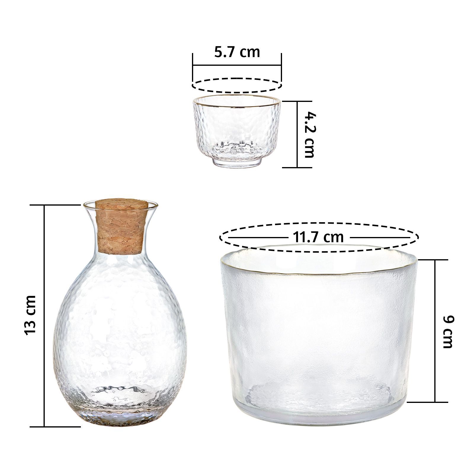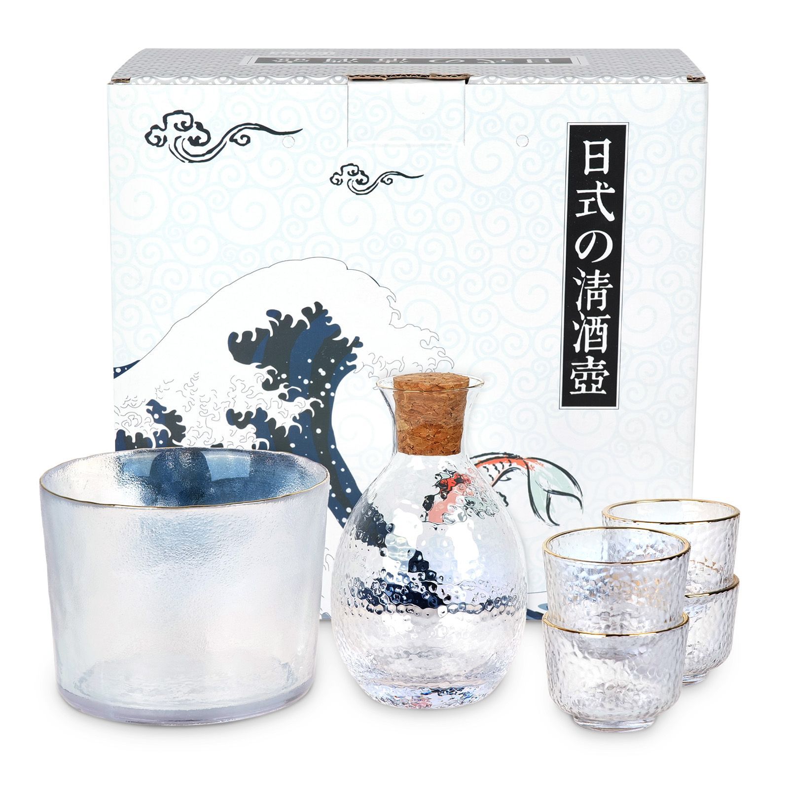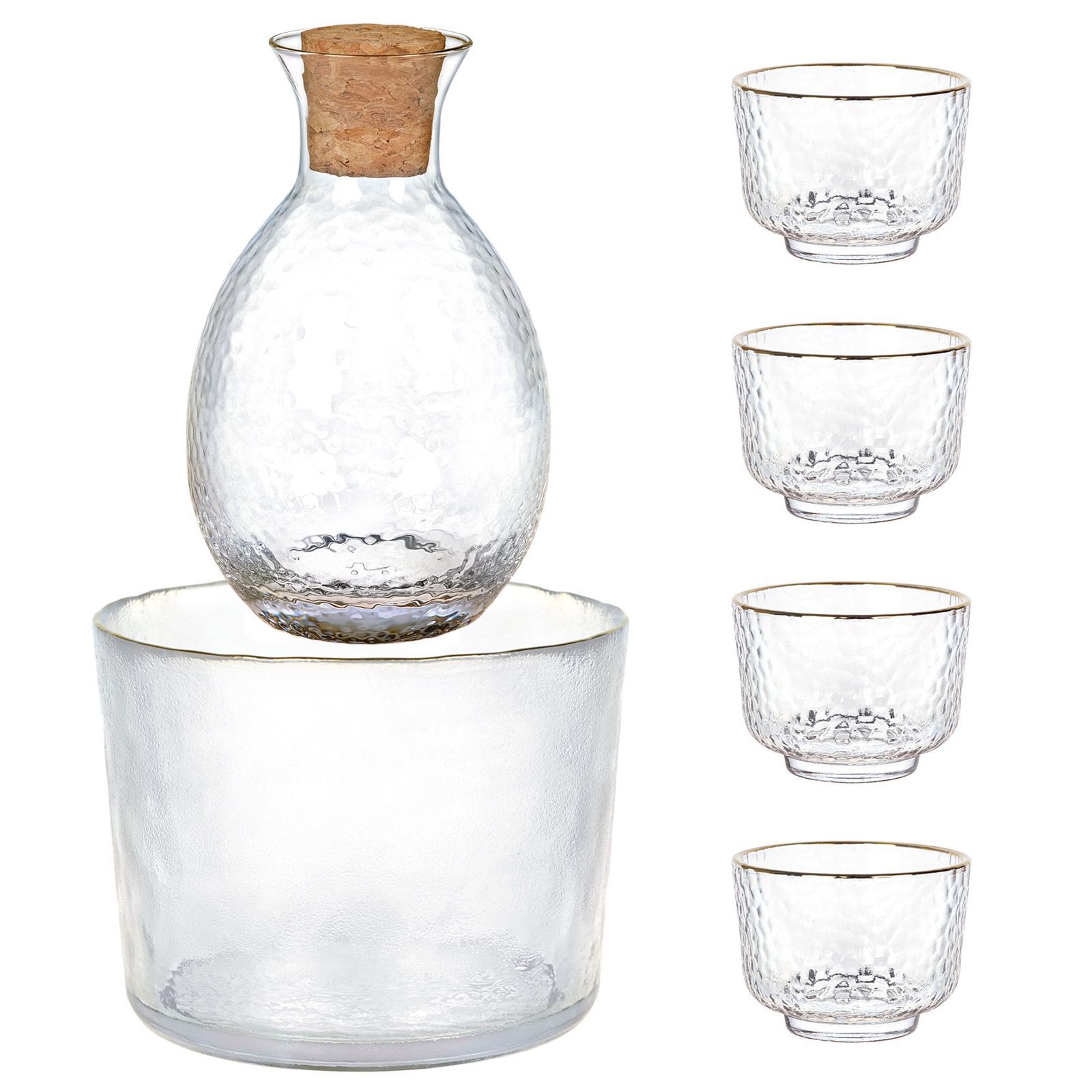 Japanisches Sake-Set aus Glas | 6-teilig (Karaffe + Warmhalteschale + 4 Schalen)