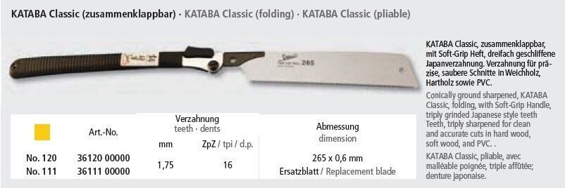 Japansäge Kataba Classic 265mm zusammenklappbar japanische Zugsäge Made in Japan
