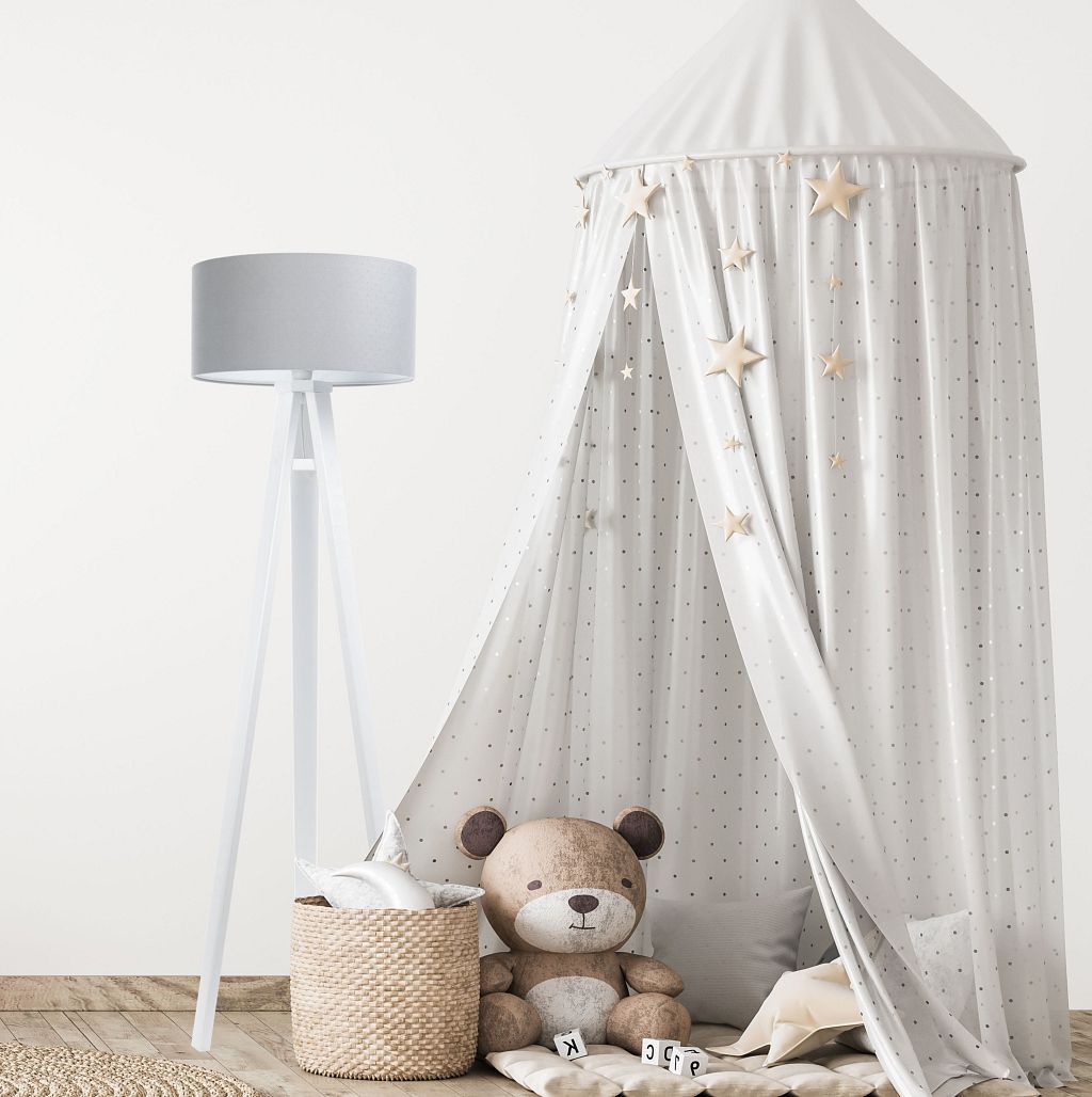 Jasmin Kids Stehleuchte 40cm Hellgrau, Weiß Lampenfuß aus weißem Kiefernholz