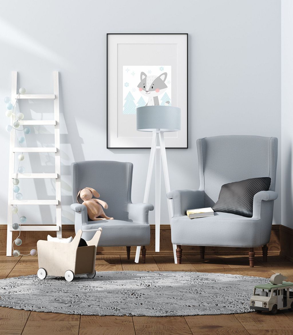 Jasmin Kids Stehleuchte 40cm Lampenfuß aus weißem Kiefernholz Hellblau, Weiß