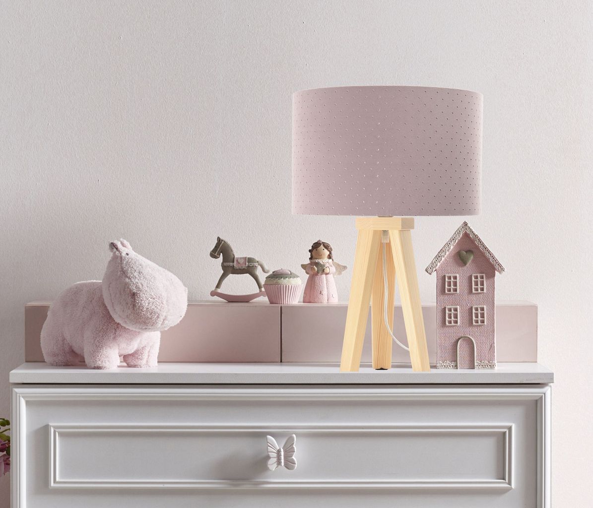 Jasmin Kids Tischleuchte 30 Kiefer Natur 46 Lampenschirmhöhe 20 Puderrosa, Weiß3