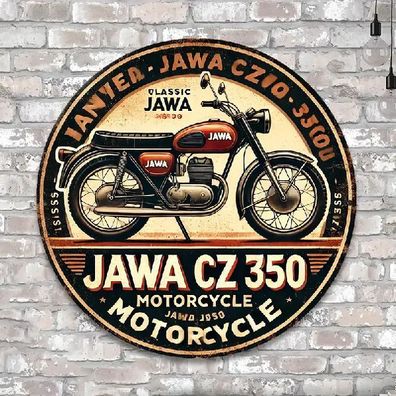 • Blechschild rund Jawa CZ350 Motorrad Retro Nostalgie Vintage TE1685