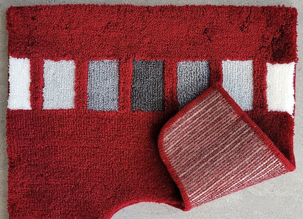 Kleine Wolke Jazz Weinrot WC-Vorleger mit Ausschnitt 55x55cm. Florhöhe mit Hoch-Tief-Effekt