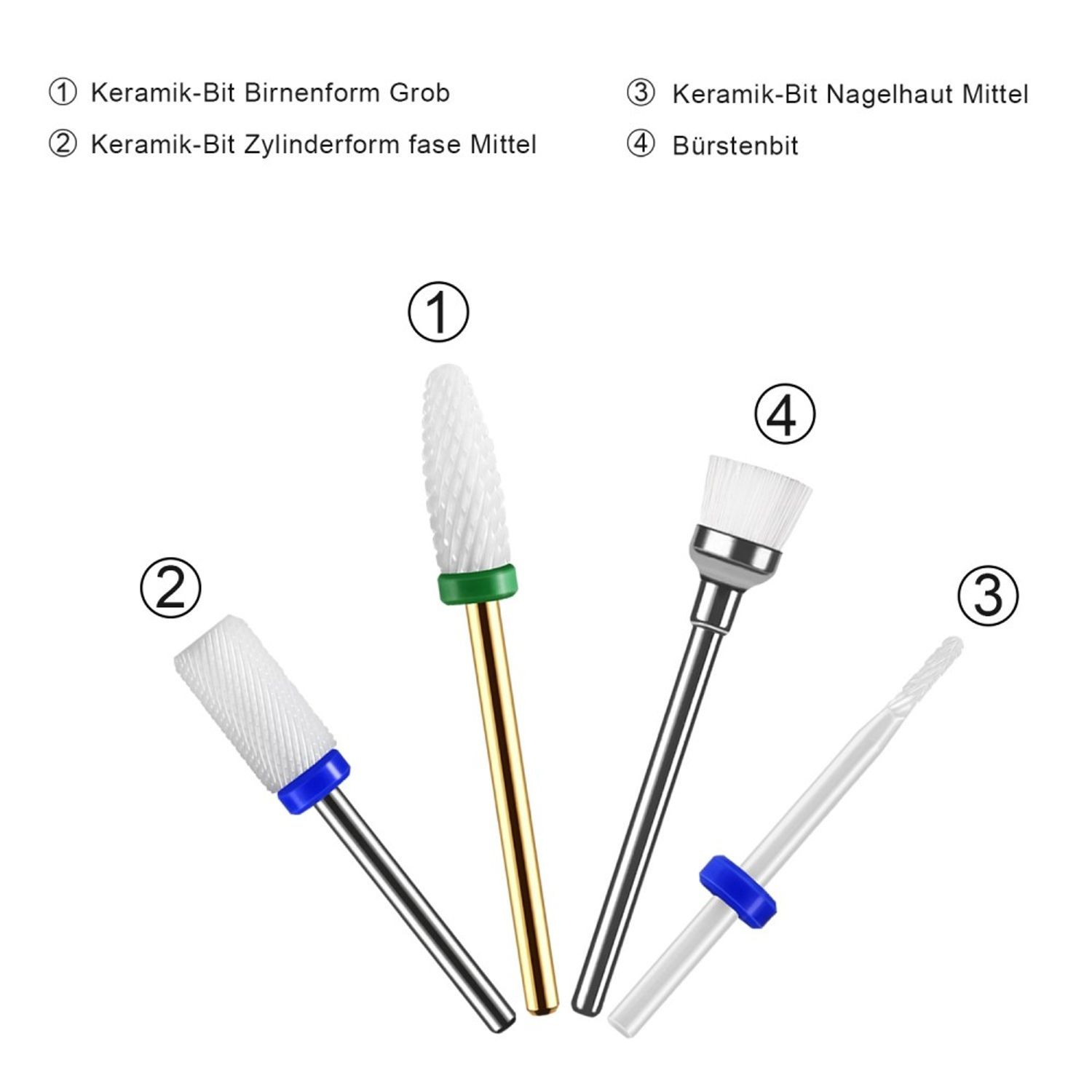 JCMaster MCE4, 3x Premium Keramik Nagelfräser Bit Set + 1x Bürstenbit, Standardmaße