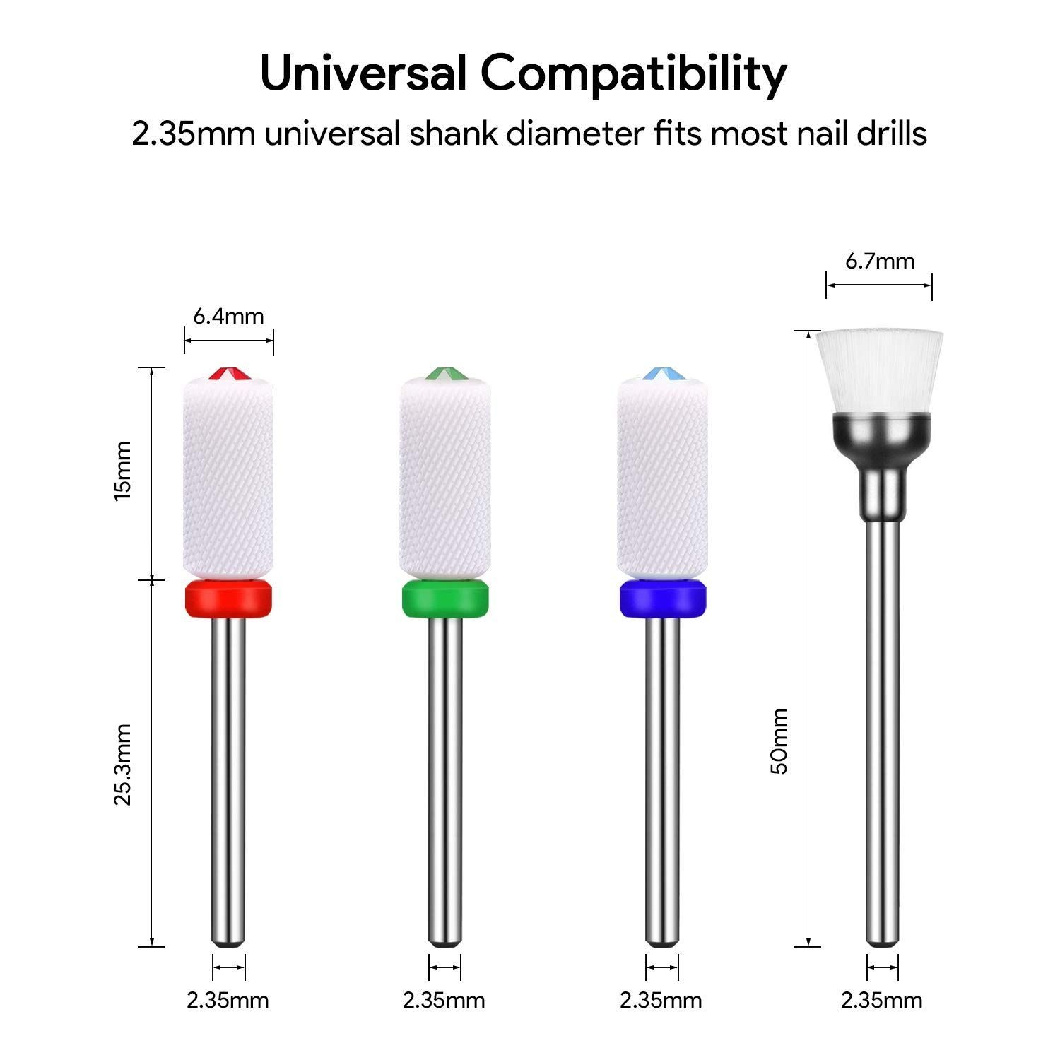 JCMASTER MCE475CMF, Premium Keramik Aufsätze 2.35mm Nagelfräser Crystal Bits Gelnägel Medium Schleifen Acryl Maniküre, Pediküre Nageldesign Schleifkörper Acrylnägel inkl 1x Halterung, verschiedene Stärken