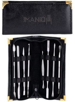 Maniküre Set 8 teilig Etui Pinzette Feile Hautschere Nagelknipser schwarz