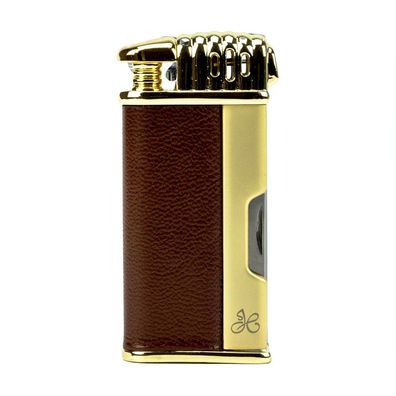 • Jean Claude Pfeifen-Feuerzeug Kent gold poliert Leder braun mit Pfeifenbesteck