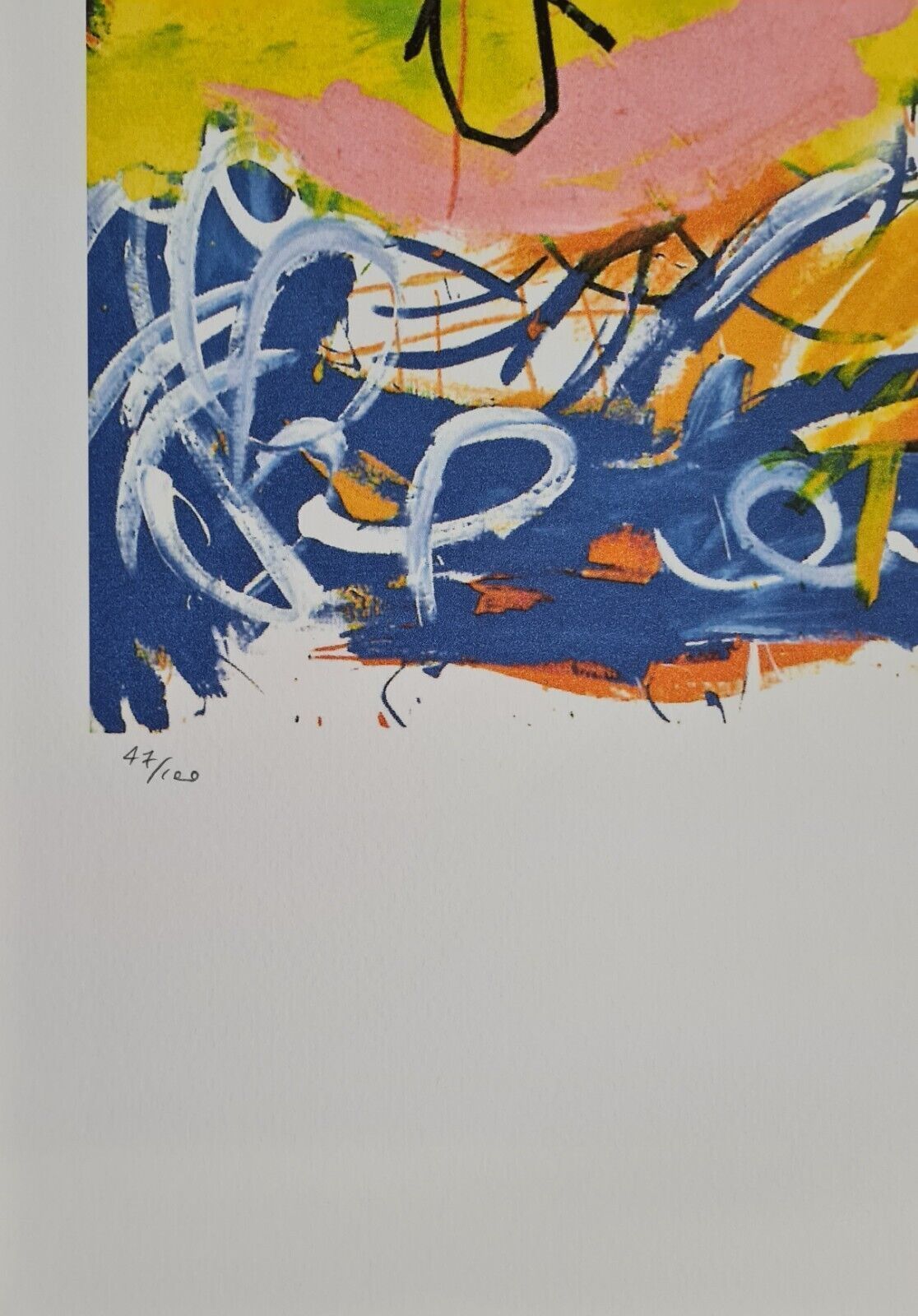 Lithographie Angeln In der Platte signiert und mit der Hand nummeriert Limitierte Auflage von 100 Stück Jedes Stück ist einzeln nummeriert Prägestempel Gesamtgröße : 70 cm x 50 cm Nach dem Original von Jean-Michel Basquiat Das Blatt wird flach verschickt, nicht gerollt! Alle angebotenen Kunstprodukt