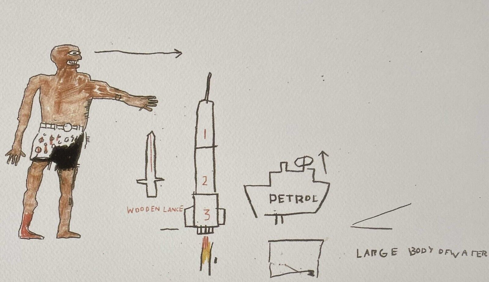 Lithographie Großes Gewässer Bewohner der Sümpfe In der Platte signiert und mit der Hand nummeriert Limitierte Auflage von 100 Stück Jedes Stück ist einzeln nummeriert Prägestempel Gesamtgröße : 70 cm x 50 cm Nach dem Original von Jean-Michel Basquiat Das Blatt wird flach verschickt, nicht gerollt!