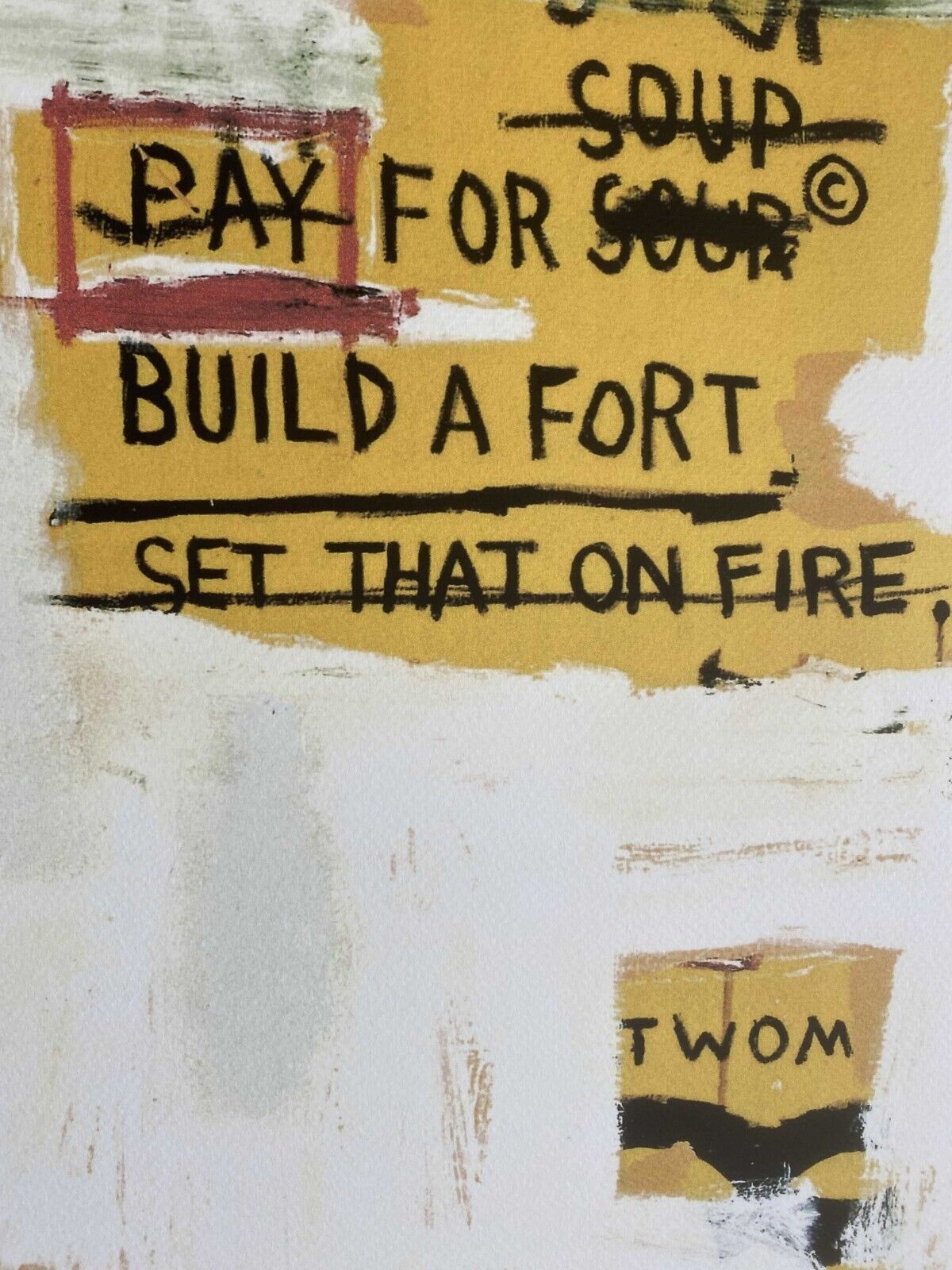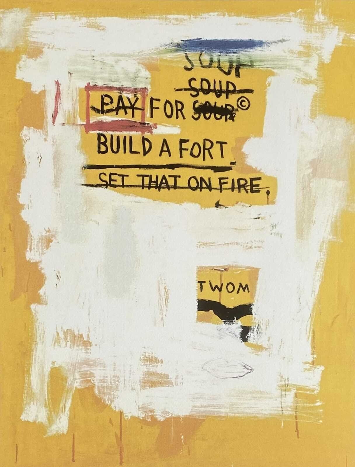 Lithographie Pay for Soup In der Platte signiert und mit der Hand nummeriert Limitierte Auflage von 100 Stück Jedes Stück ist einzeln nummeriert Prägestempel Gesamtgröße : 70 cm x 50 cm Nach dem Original von Jean-Michel Basquiat Das Blatt wird flach verschickt, nicht gerollt! Alle angebotenen Kunstp