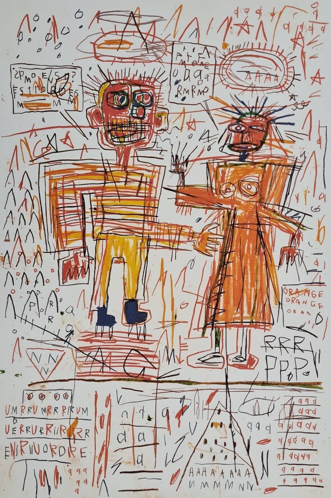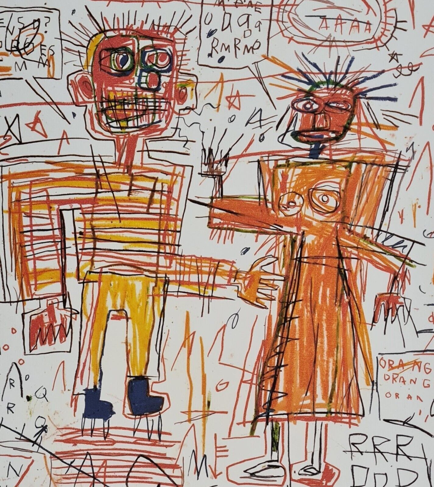 Lithographie Selbstporträt mit Suzanne In der Platte signiert und mit der Hand nummeriert Limitierte Auflage von 100 Stück Jedes Stück ist einzeln nummeriert Prägestempel Gesamtgröße : 70 cm x 50 cm Nach dem Original von Jean-Michel Basquiat Das Blatt wird flach verschickt, nicht gerollt! Alle angeb